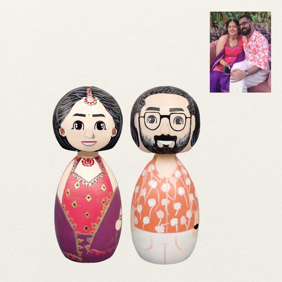 5. Photo Personalized Miniature Wooden Dolls: Unique wooden dolls capturing the couple's likeness, serving as charming decorative pieces.