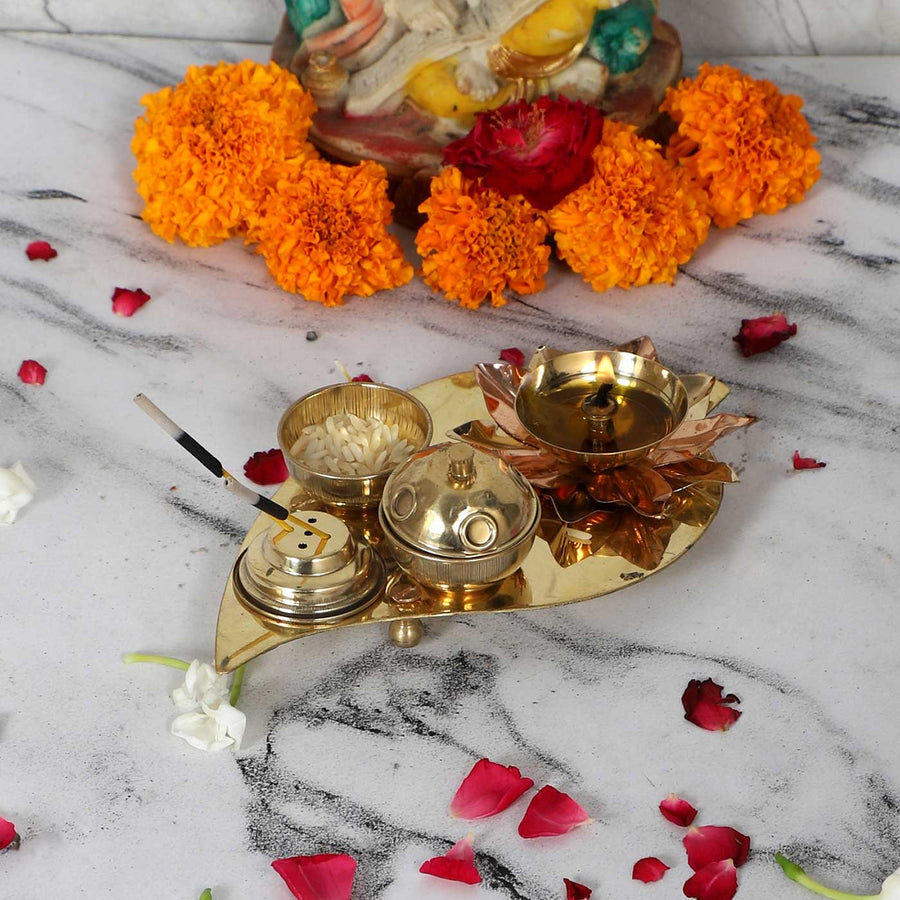 13. Pooja Decor Items:Choose items for pooja ceremonies, such as ornate thalis or decorated incense holders. These items are essential for traditional rituals and add a touch of elegance to the spiritual celebrations. Well-crafted pooja decor can enhance the ritualistic experience and bring a sense of reverence to the occasion.