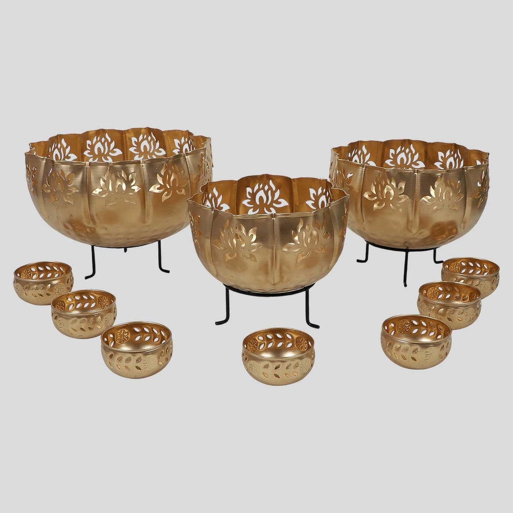 Urli Set | Brass Urli Bowl | Copper Urli Bowl | Hanging Urli Bowl | Lotus Urli Bowl | Metal Urli Bowl | Terracotta Urli Bowl