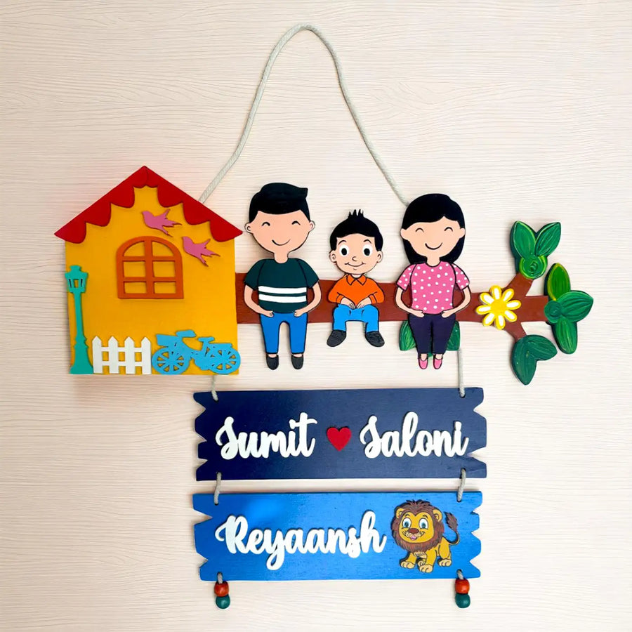 Couple Name Plates | Name Plate For Family With Pets | Name Plate For Family With Kids