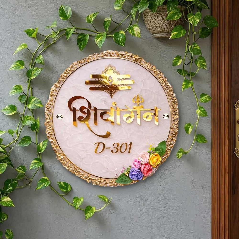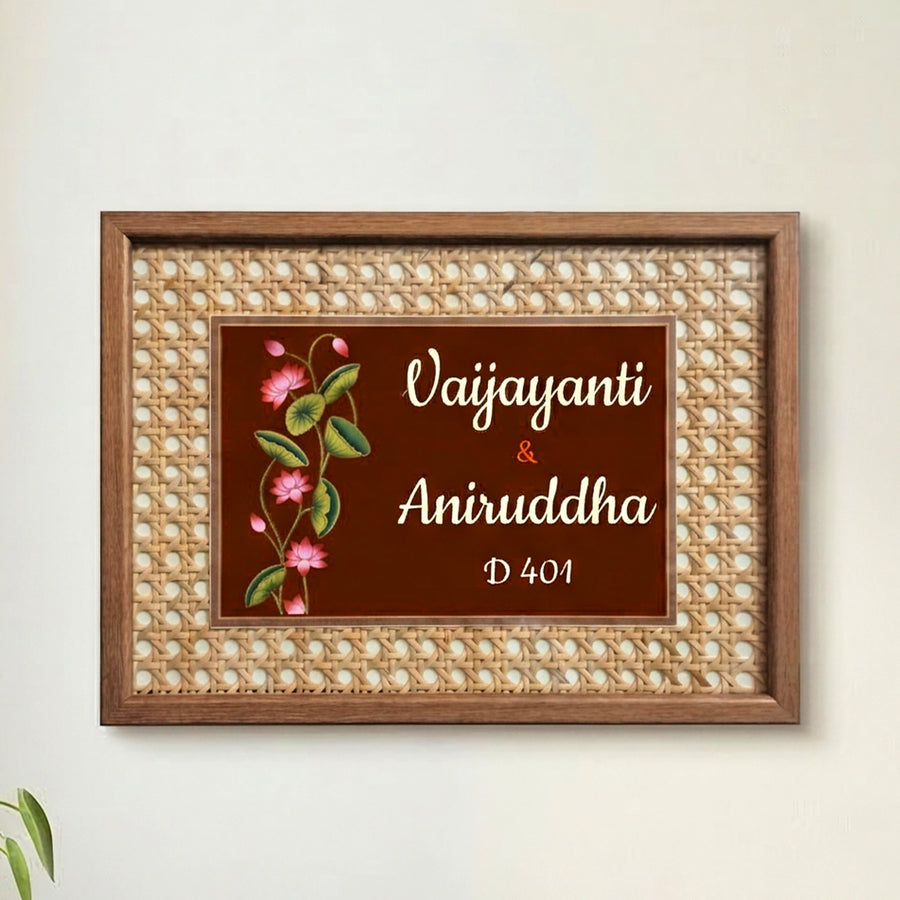 Handmade Lotus Hand Motif Rattan Name Plat...