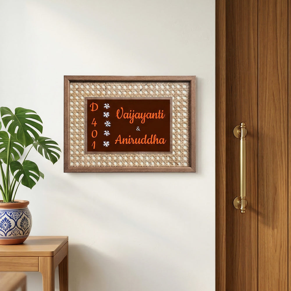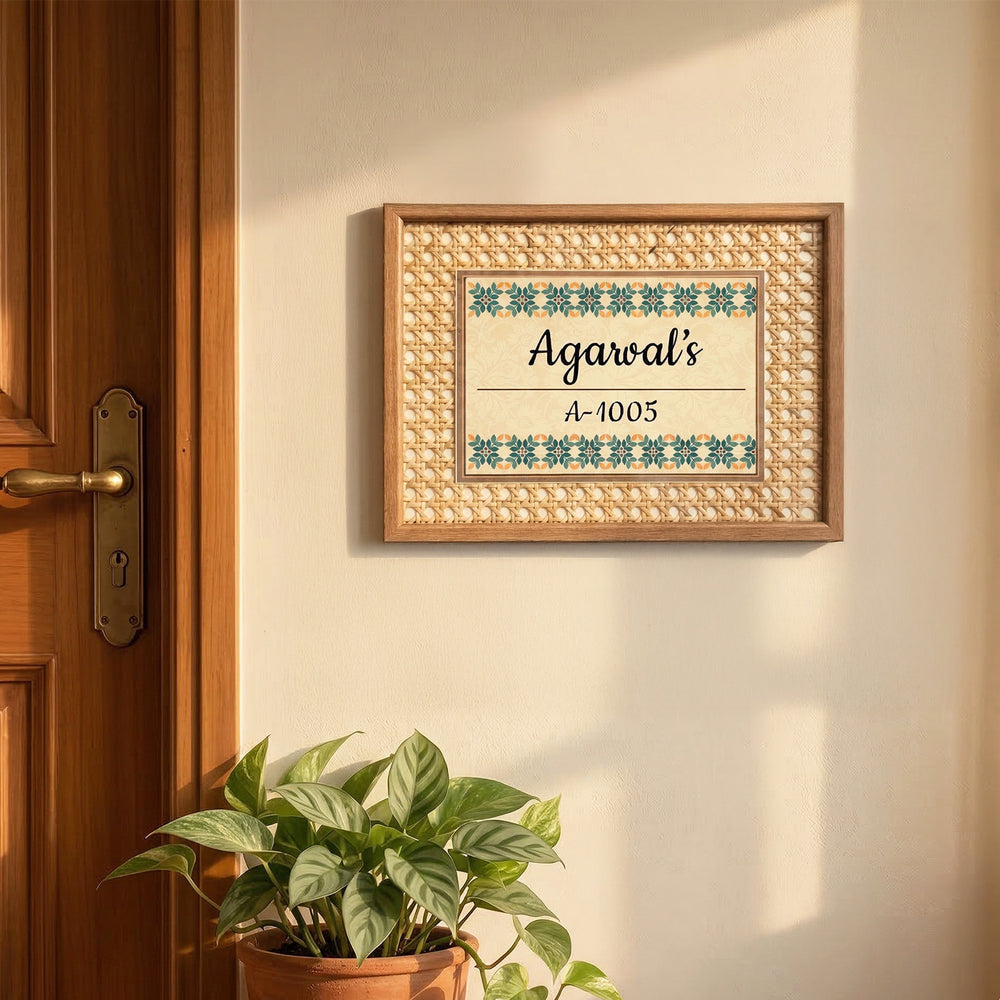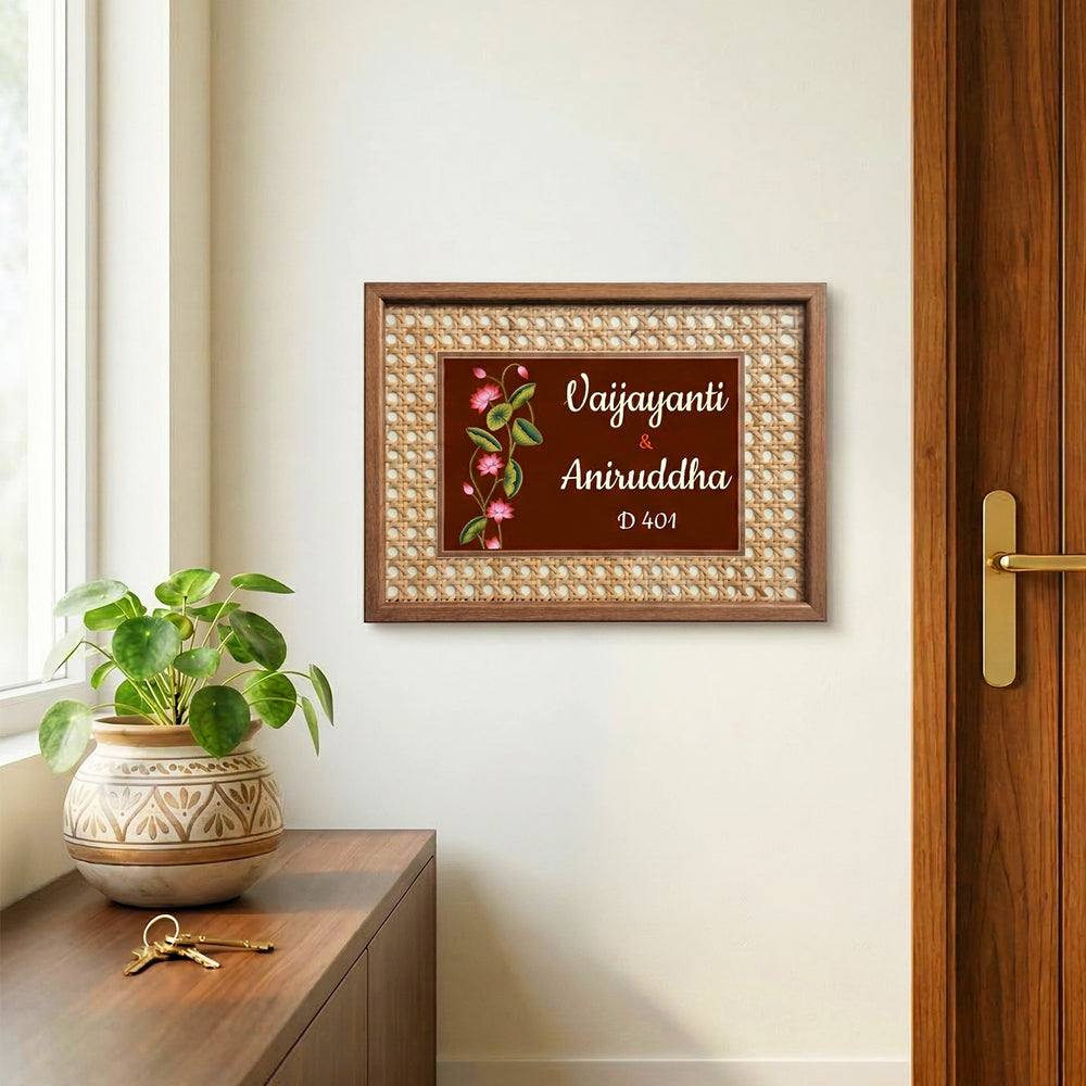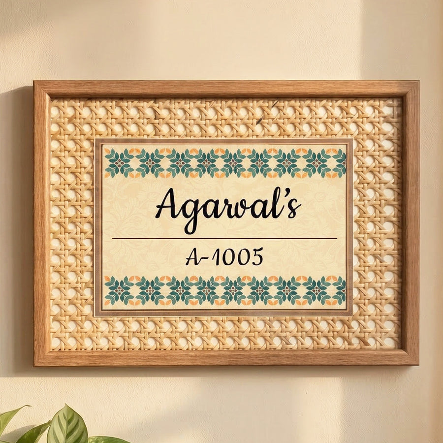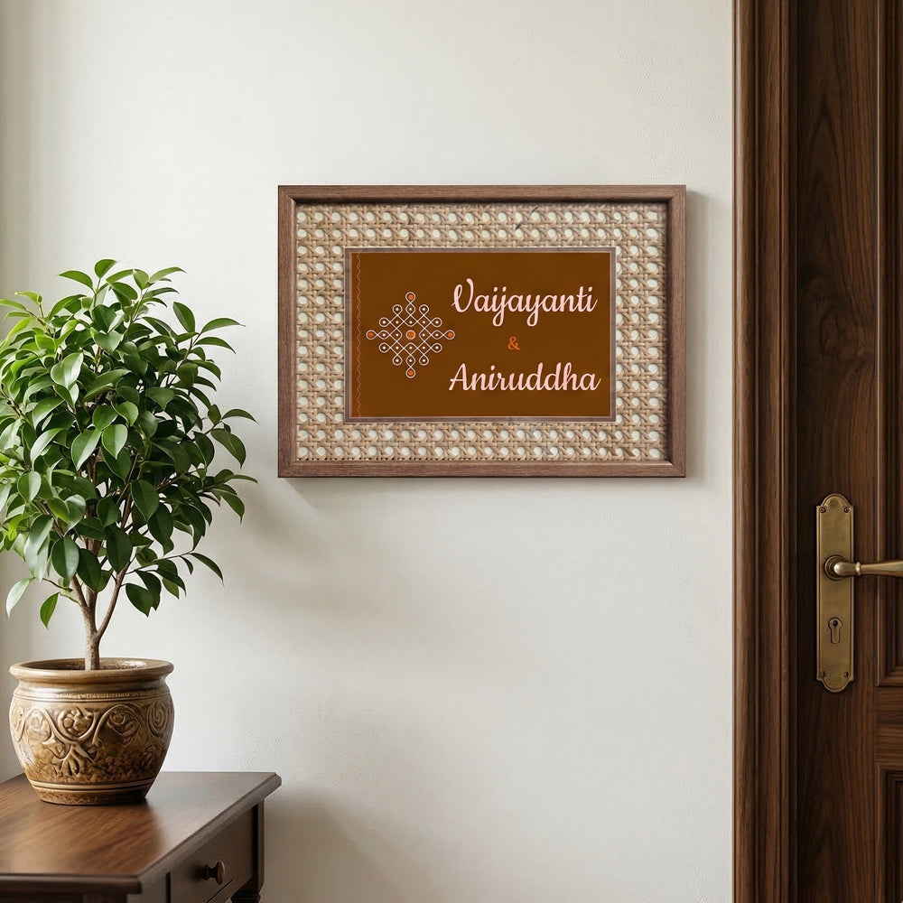 Handmade Kolam Motif Rattan Name Plate Wit...