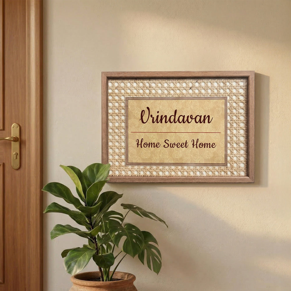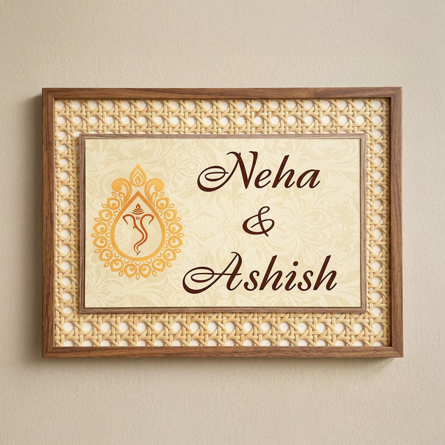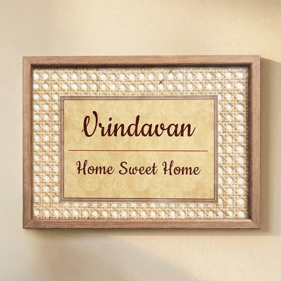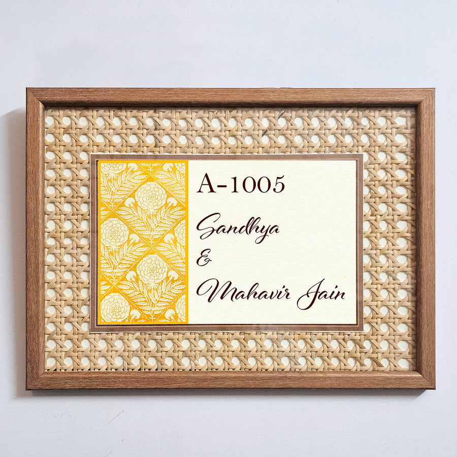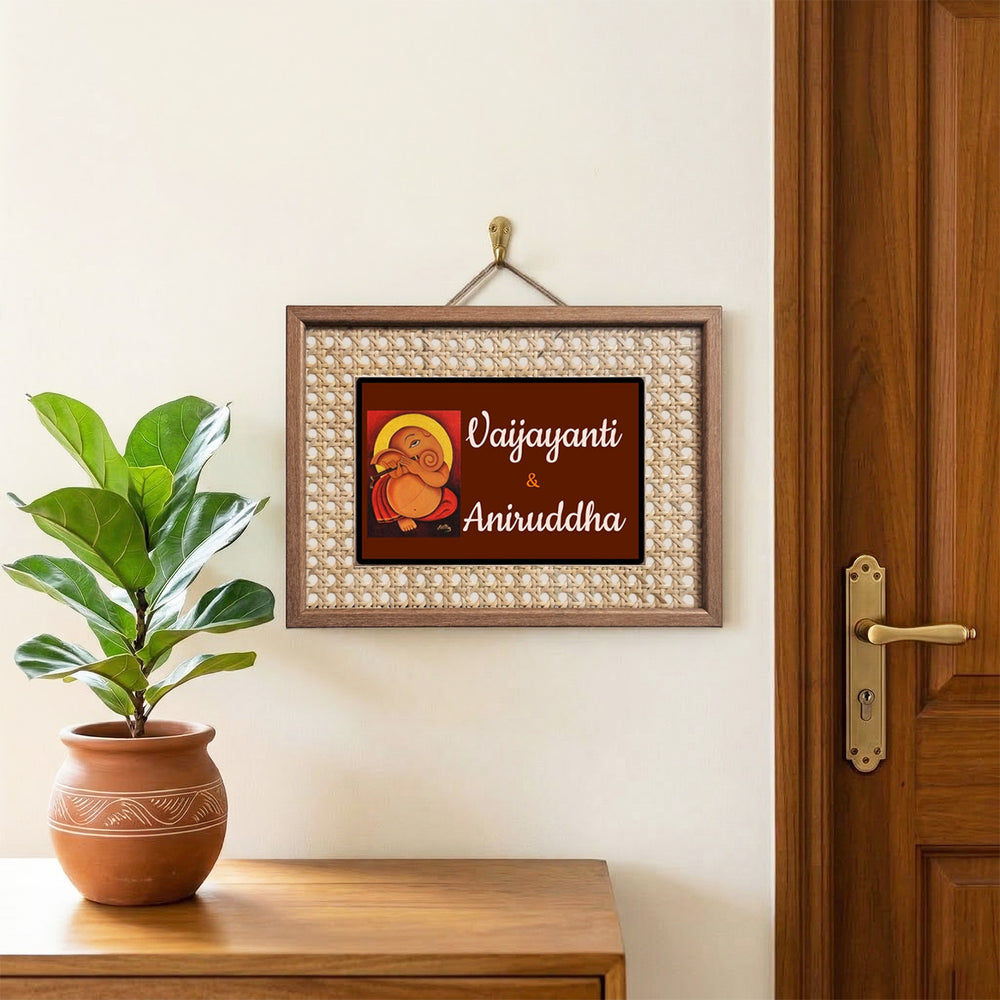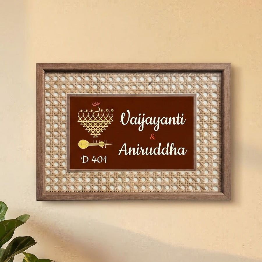 Handmade Kolam Motif Rattan Name Plate Wit...