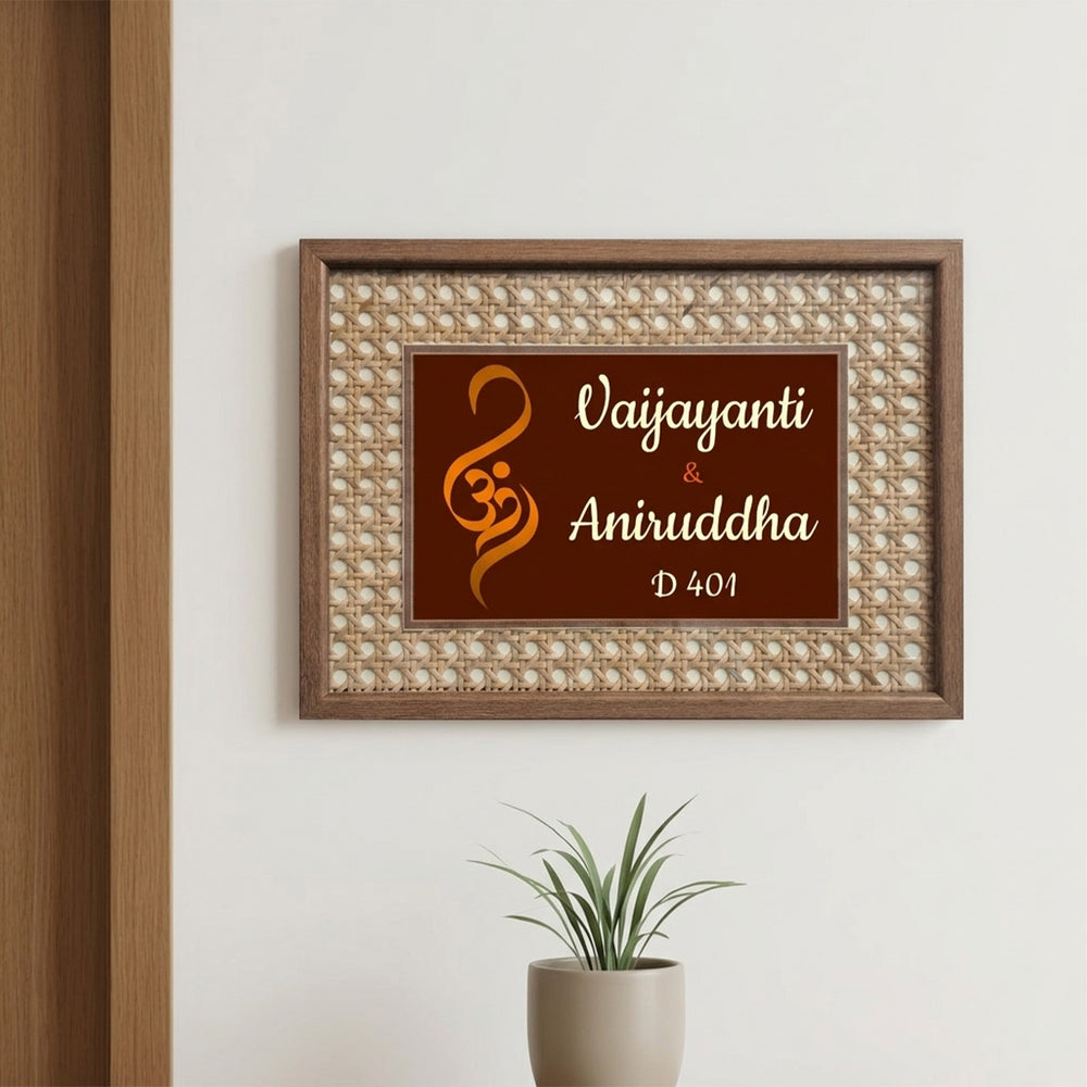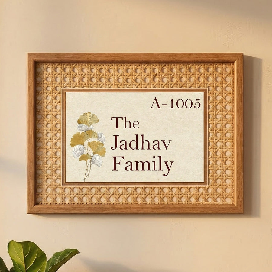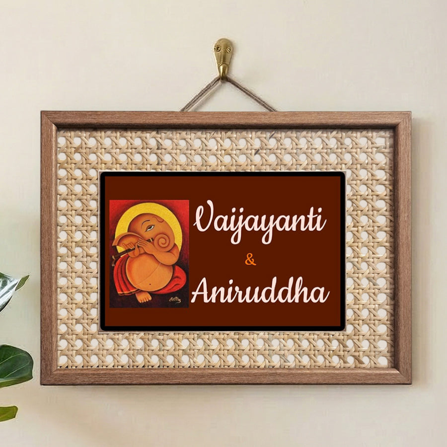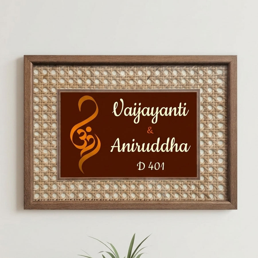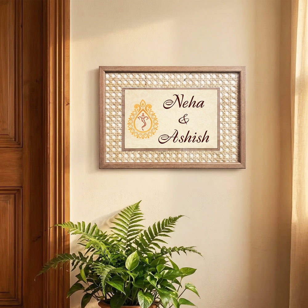Handmade Kolam Motif Rattan Name Plate Wit...