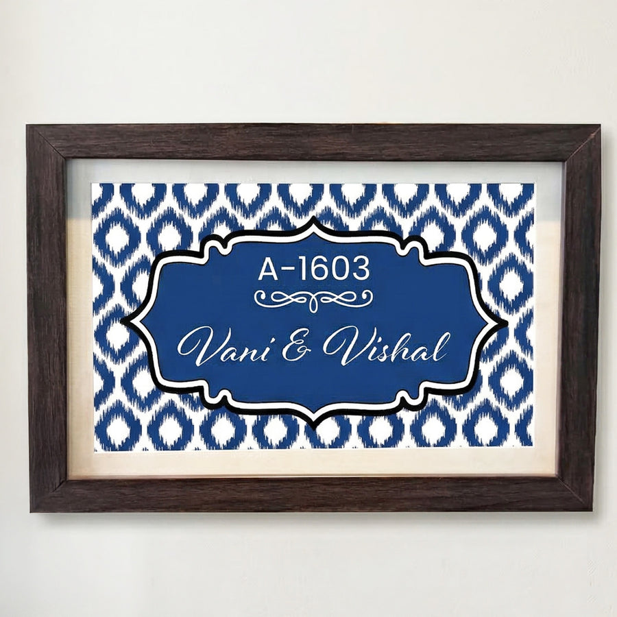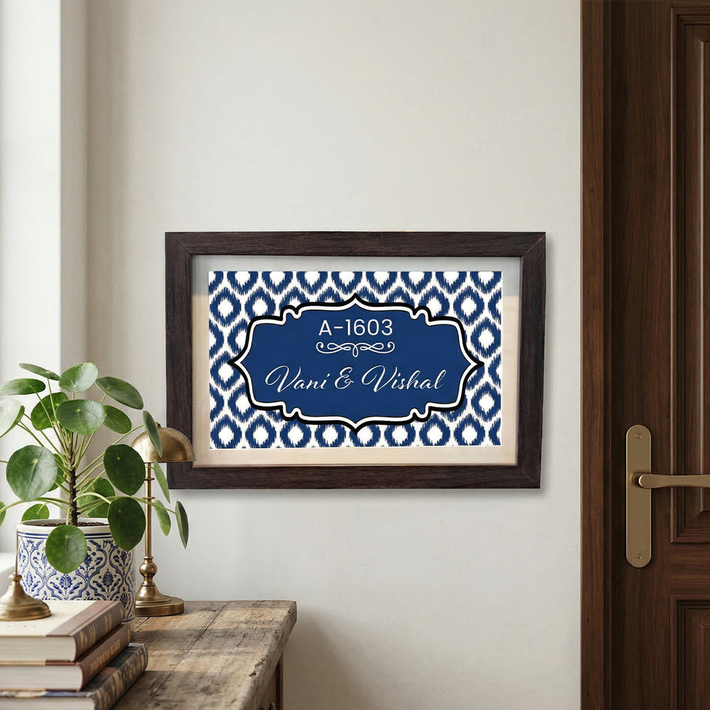 Handmade Blue Ikat Pattern Printed Name Pl...