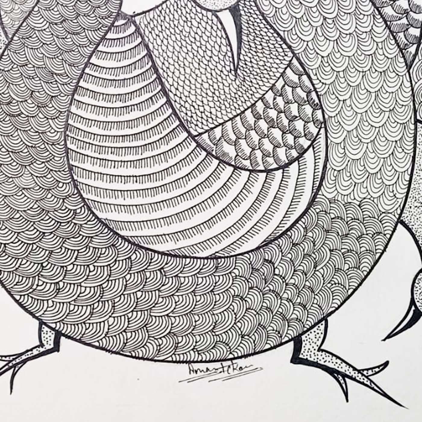 - Hand-painted on high-quality paper using vibrant acrylic colors, it embodies the intricate patterns and rhythmic detailing that define Gond art.