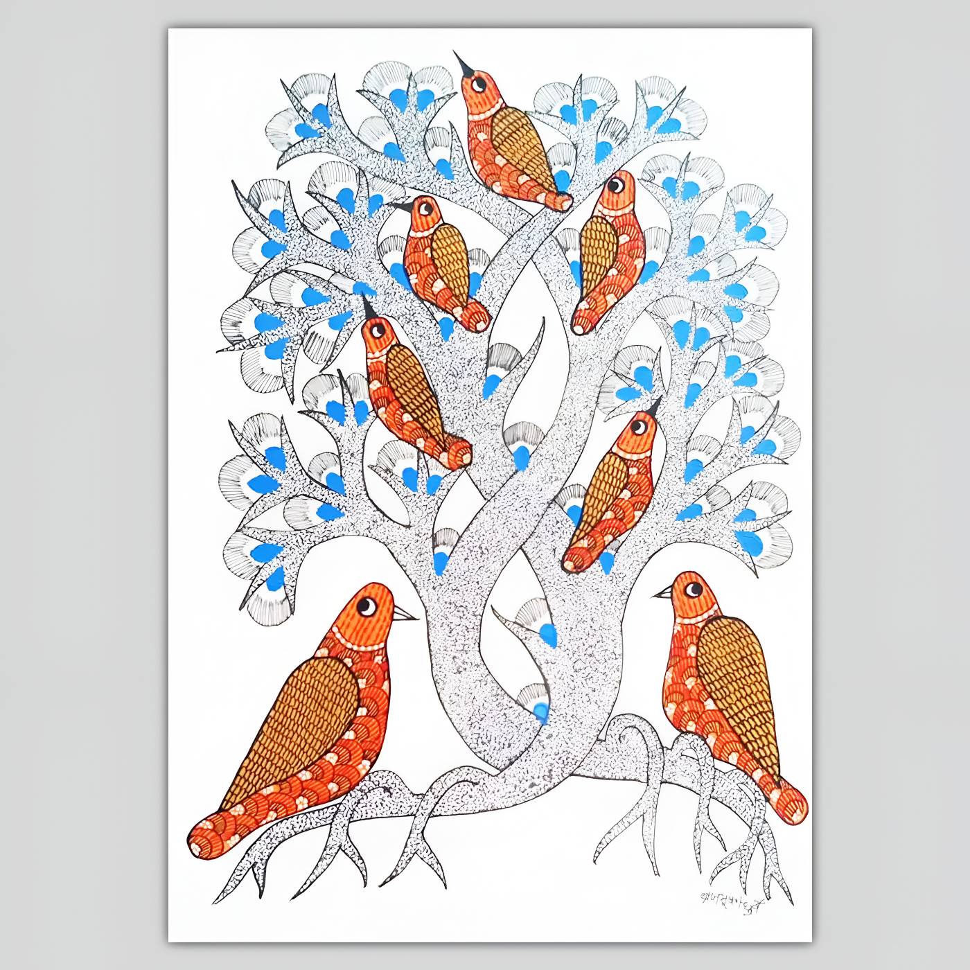 - This artwork is hand-painted by Gond artist Brajbhooshan Dhurve from Bhopal, who has been practicing the art for over 12 years.