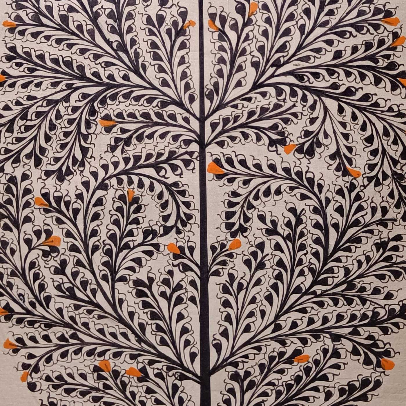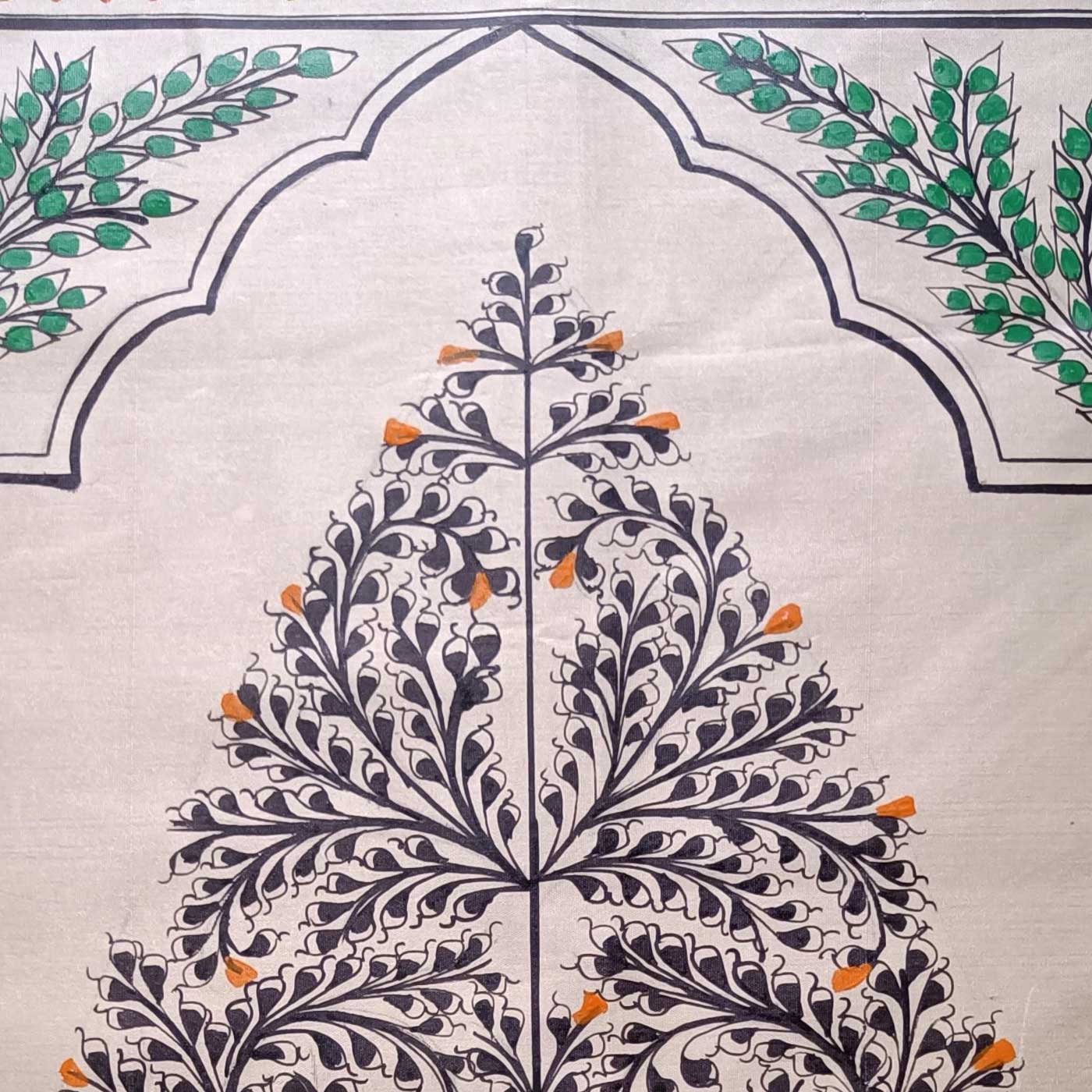 - Created on premium tussar silk, the artwork uses 100% natural pigments made from conch powder, flowers, minerals and lamp soot.