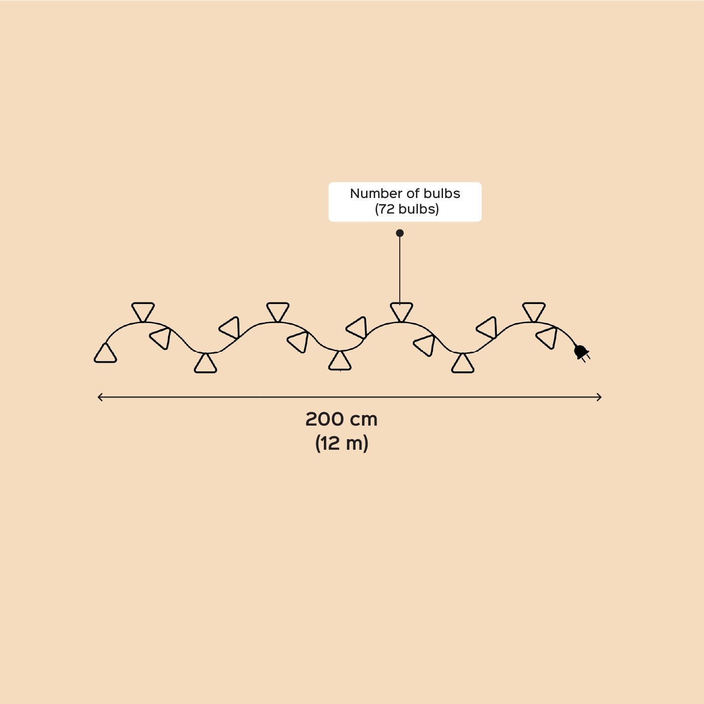 • Extremely lightweight, the 12-meter strand features 72 bulbs, perfect for decorating walls, windows, or indoor plants.