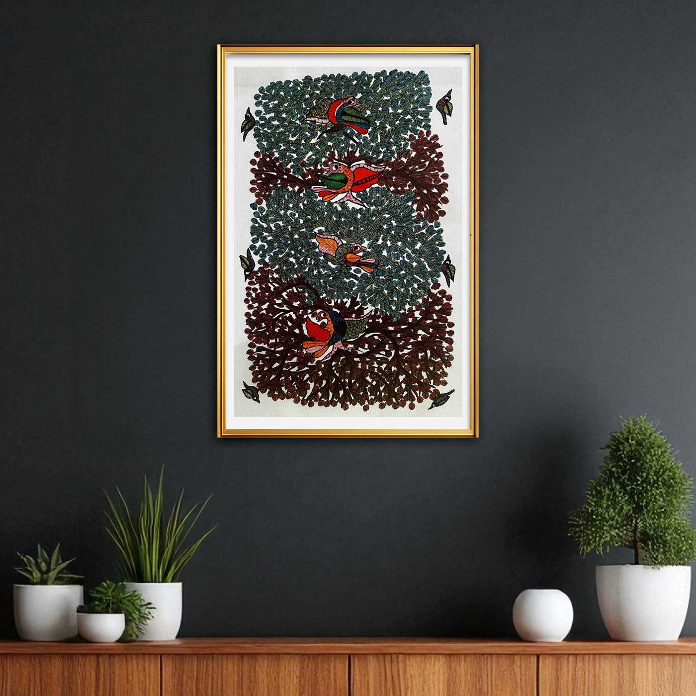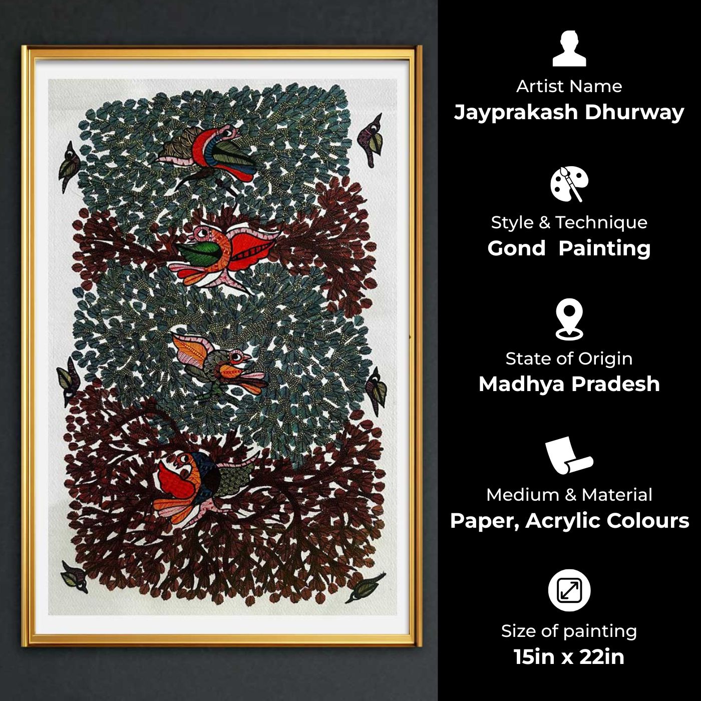 - Painted on handmade paper, it reflects both imagination and the traditional Gond art style.