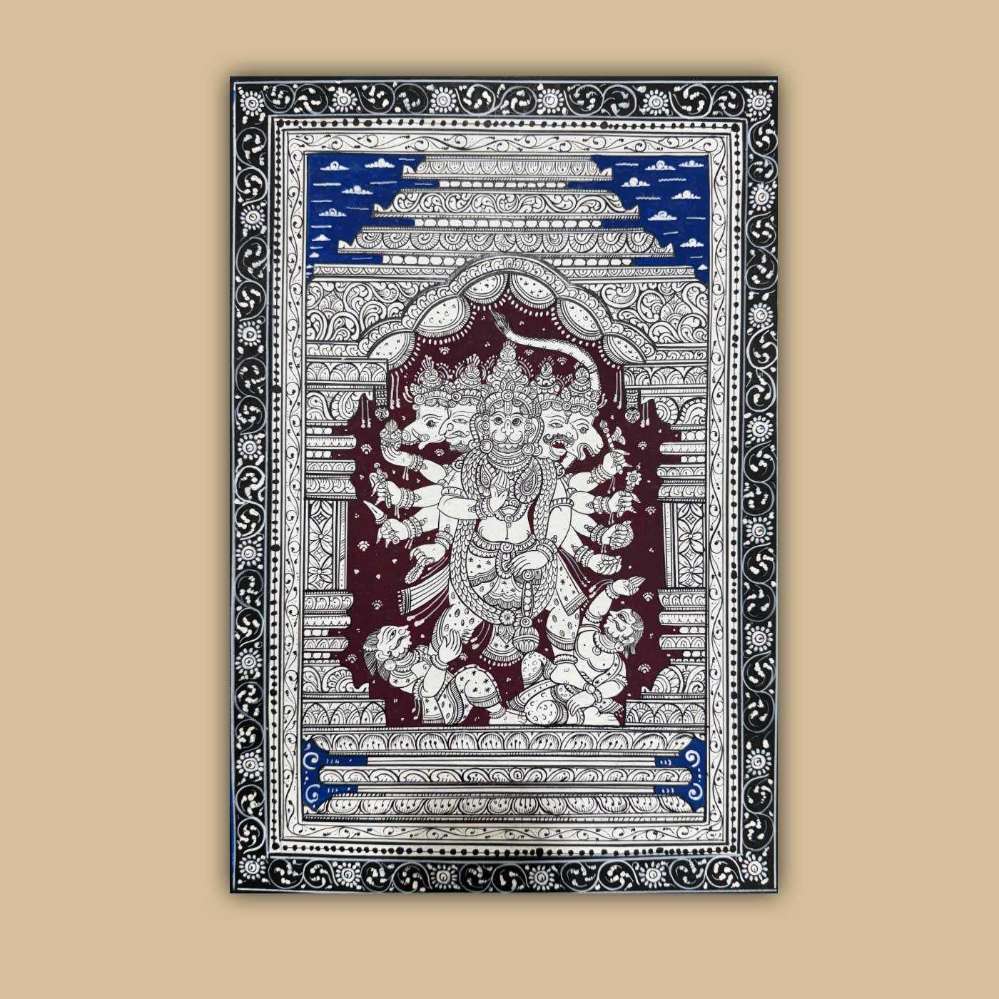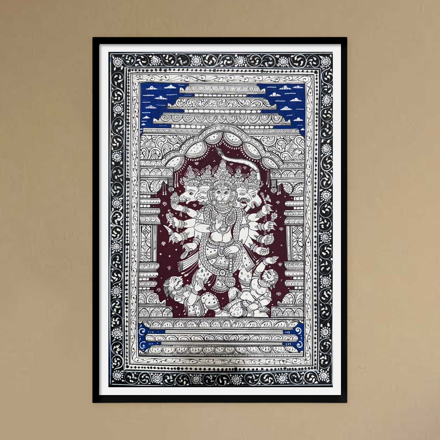 - This painting showcases Panchamukhi Hanuman in vibrant Pattachitra style.