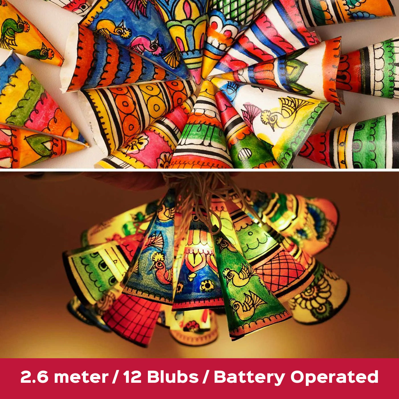 - Handcrafted in genuine leather, the fairy lights are handpainted by skilled artisans using the Tholu Bommalata technique.