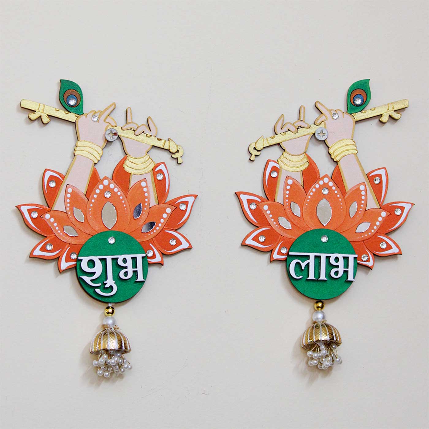 - Celebrate Diwali with the divine charm of these hand-painted Krishna Flute Shubh Labh hangings.