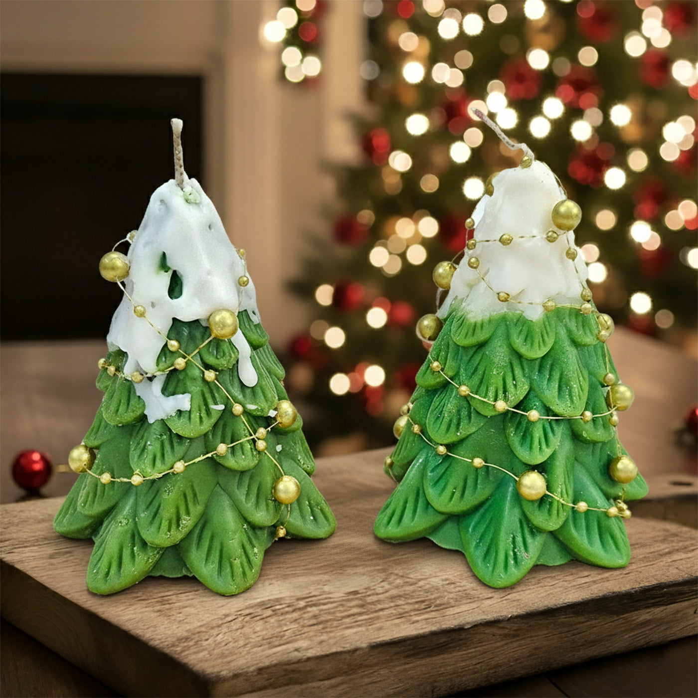 - Each candle features a textured tree silhouette topped with a soft snow-like finish for festive charm.