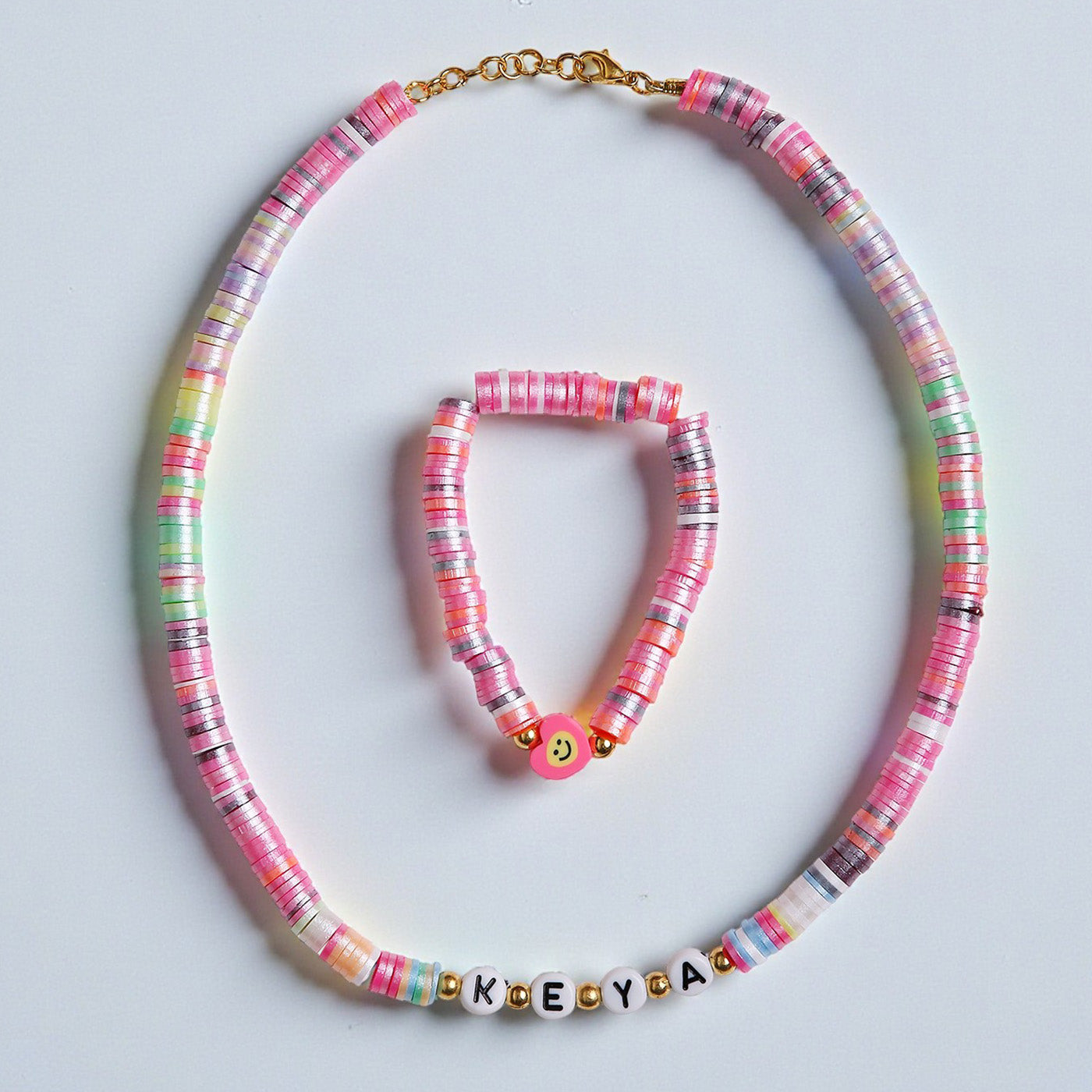 2 Pc | Personalized Multicolor Beaded Necklace & Bracelet Set For Girls