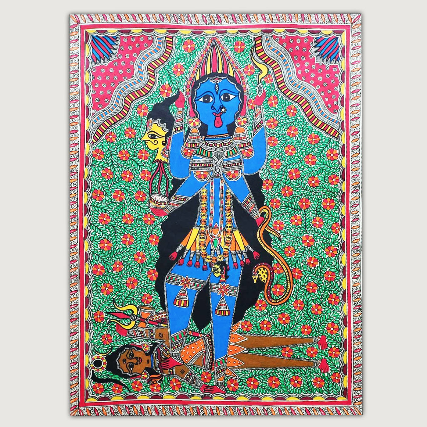 - In this painting, Goddess Kali is depicted in her awe-inspiring form, radiating divine power and fierce protection.