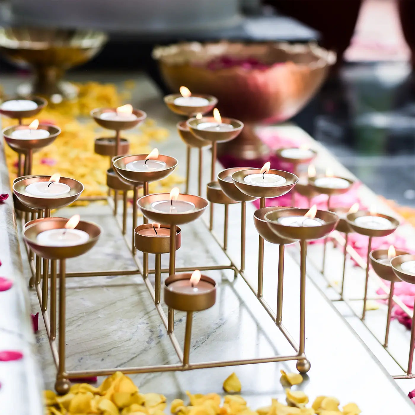 • Its three-row design allows multiple tealights to be displayed, producing a warm and inviting ambiance.