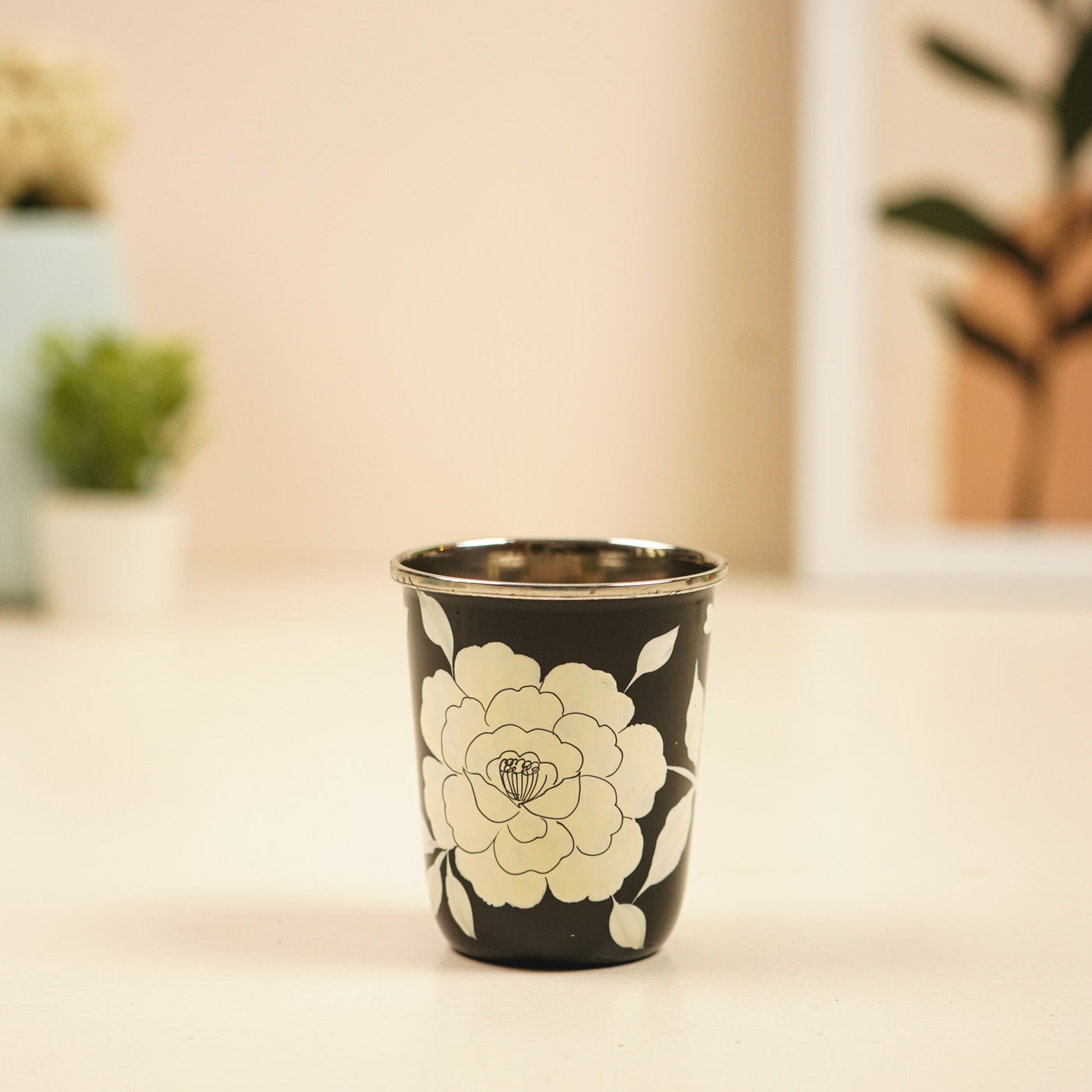 2Pc | Hand-Painted Black Birds & Flowers Kashmiri Art Stainless Steel Medium Glasses