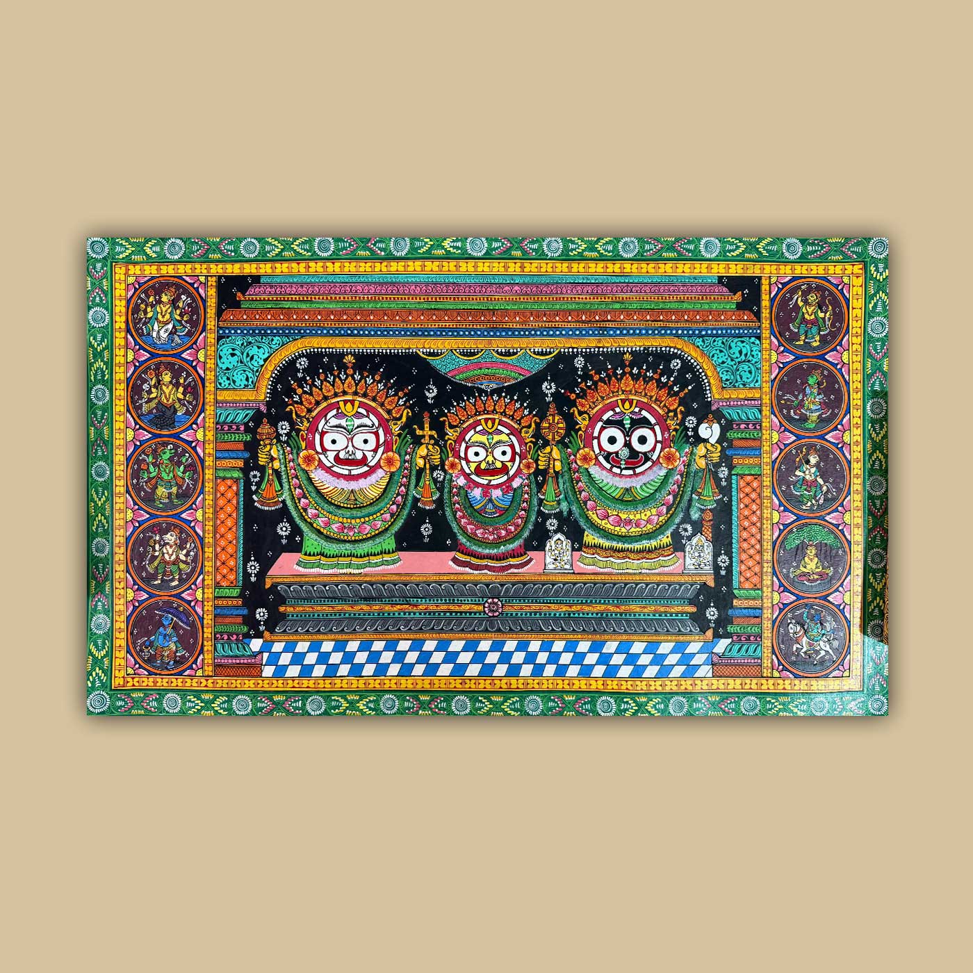 - Hand-painted using natural pigments, it embodies the Odisha Pattachitra tradition with intricate detailing.