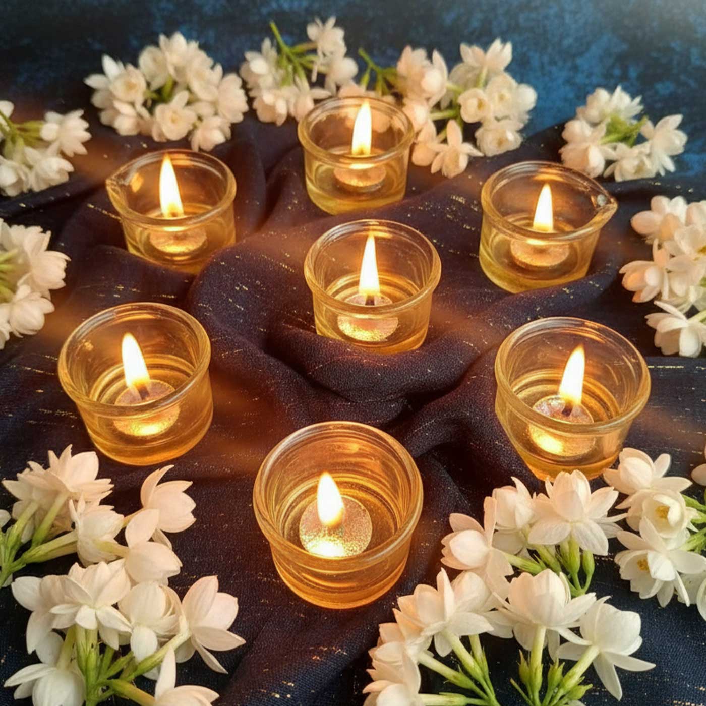 - Each diya is hand-crafted from durable glass, combining elegance with traditional design sensibilities.
