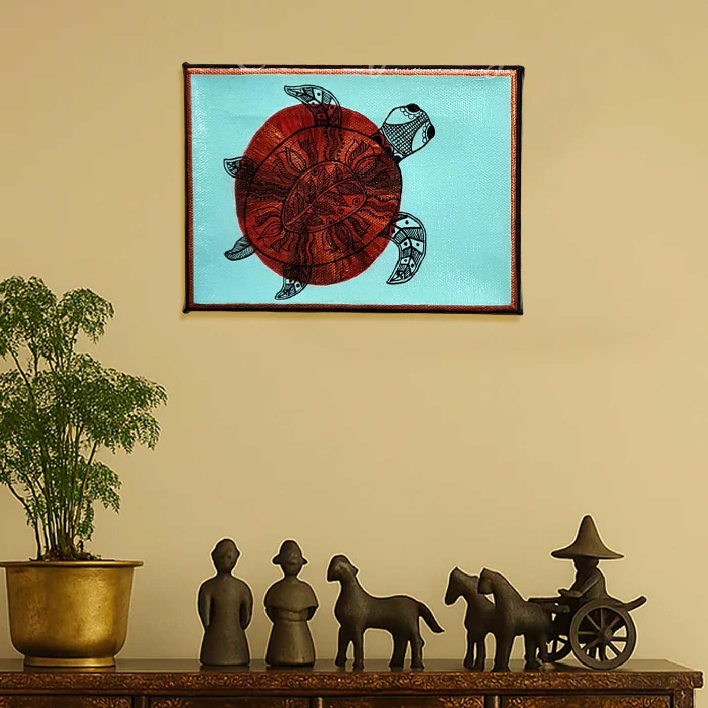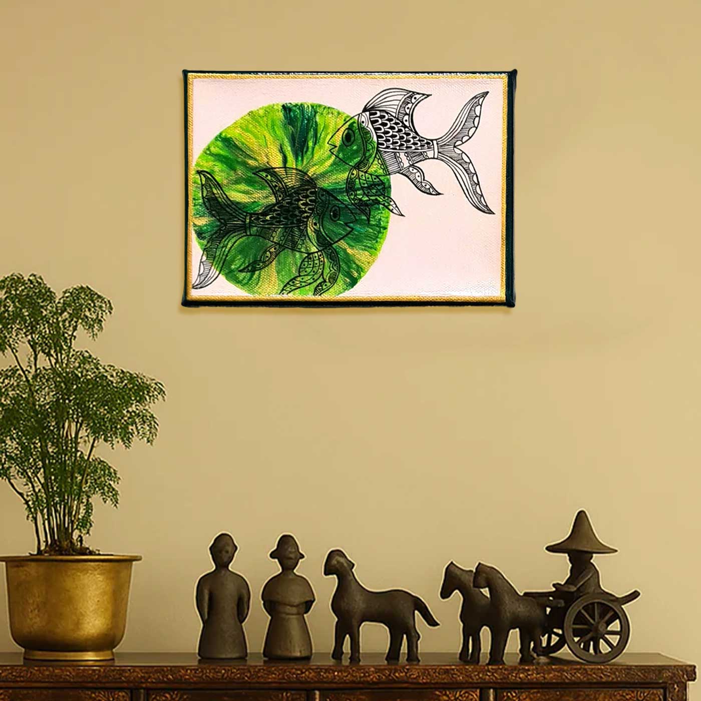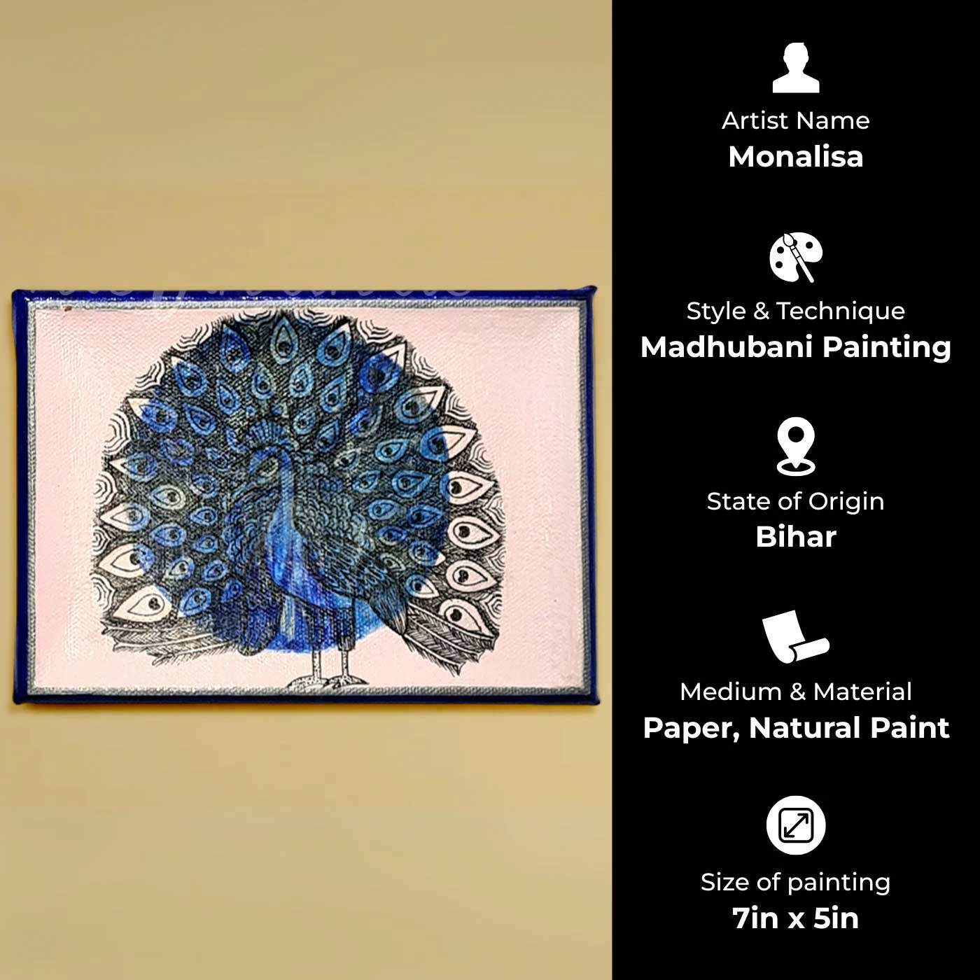 - This painting is a hand-painted Madhubani artwork created by artist Monalisa, who is deeply rooted in traditional folk art practices of Mithila while bringing a refined contemporary sensibility to her work.