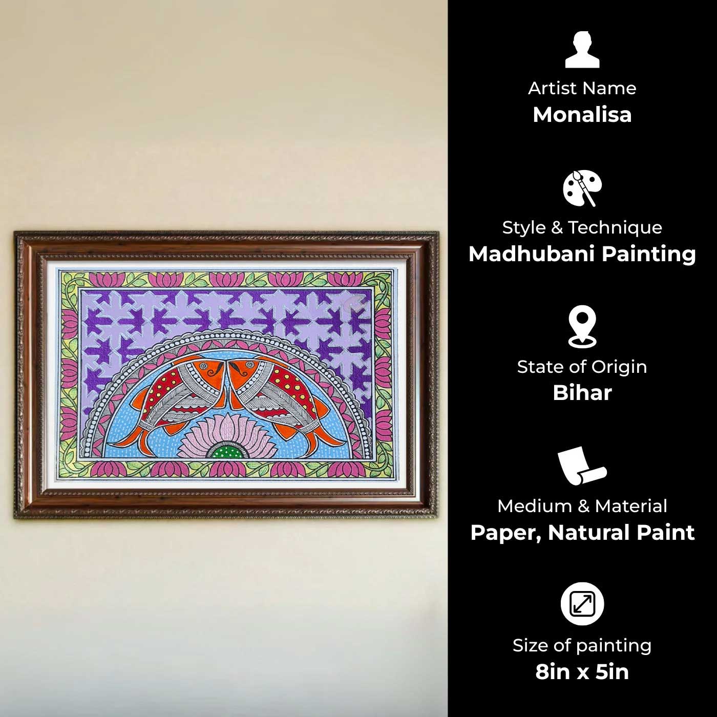 - This artwork is hand-painted by Monalisa, a skilled Madhubani artist who carries forward Mithila’s folk traditions with a refined modern touch.