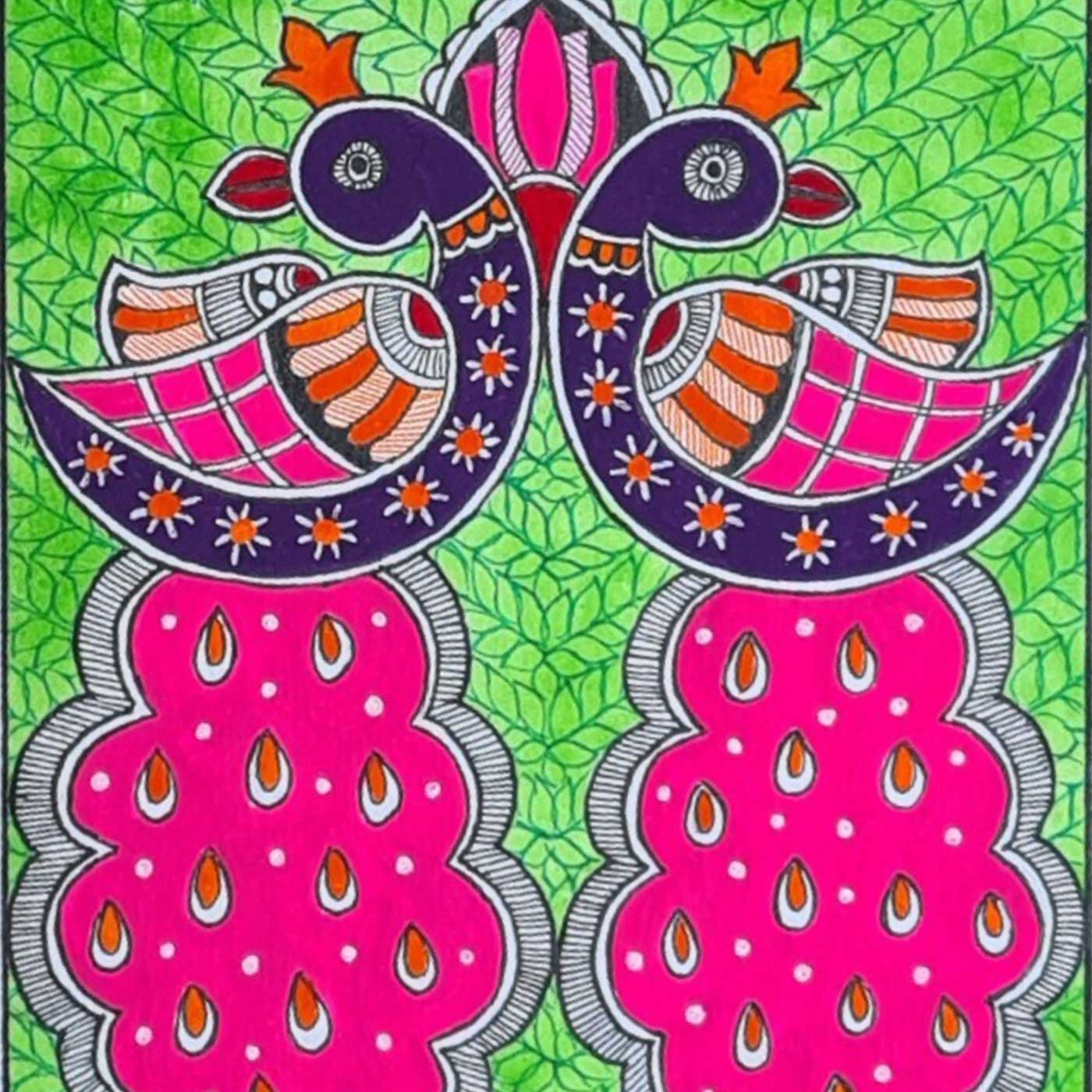 - This painting is hand-painted by Monalisa, a Madhubani artist dedicated to reviving Mithila’s folk traditions with fresh modern detailing.