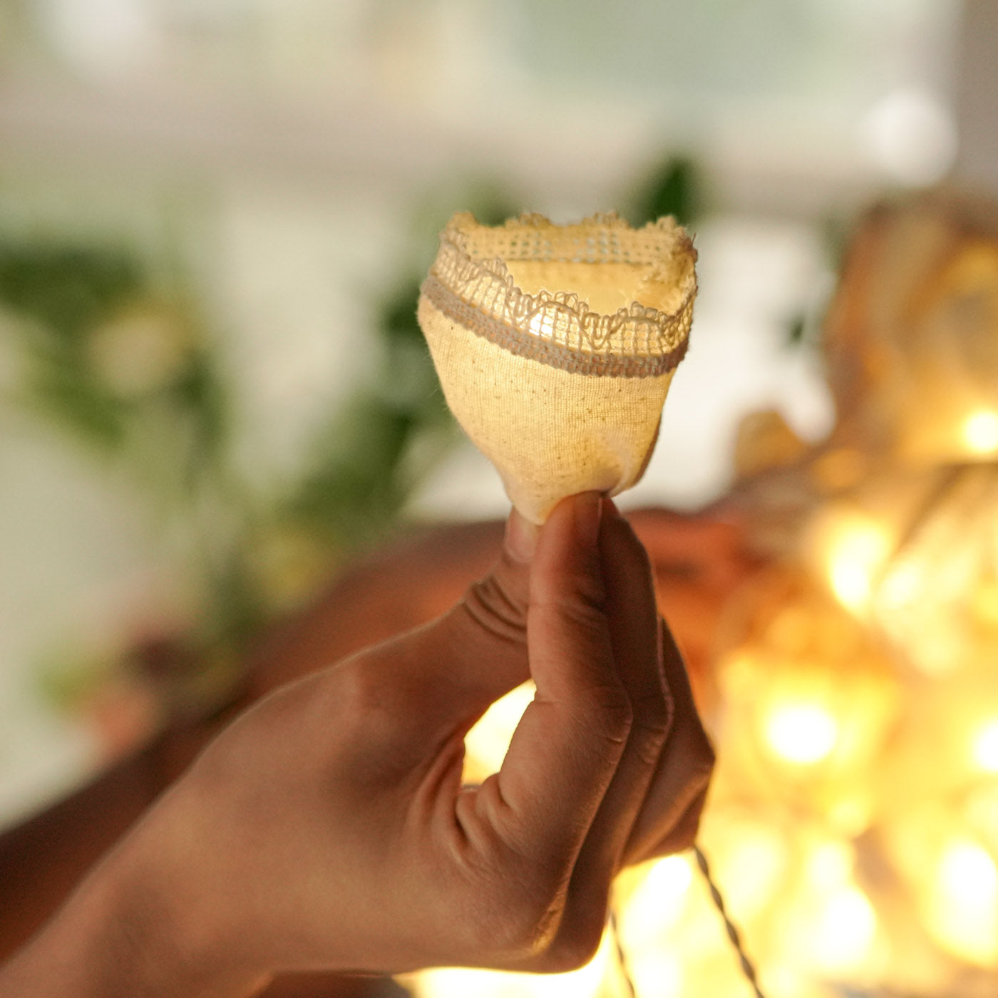 - Illuminate your home with the soft charm of these white laced fabric LED fairy lights.