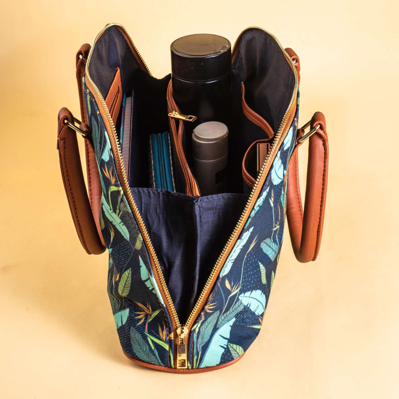 Material: Poly canvas with vegan leather handles and base, soft polyester lining inside