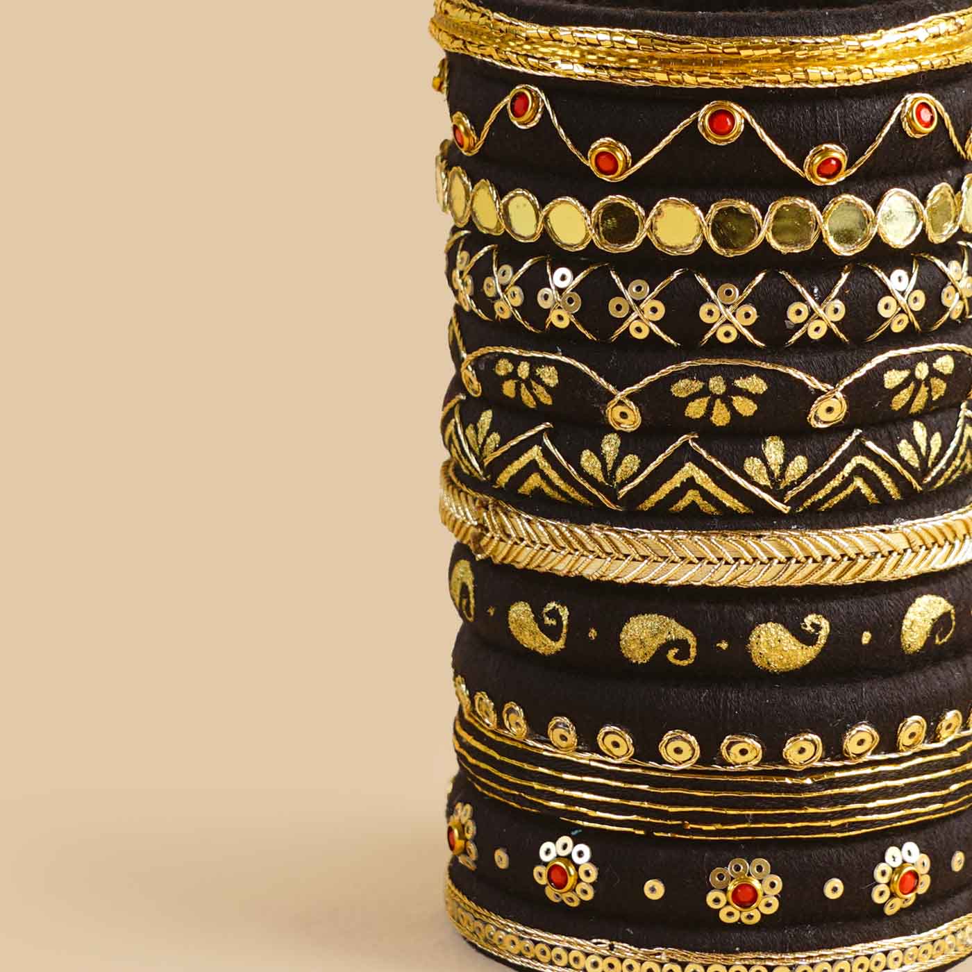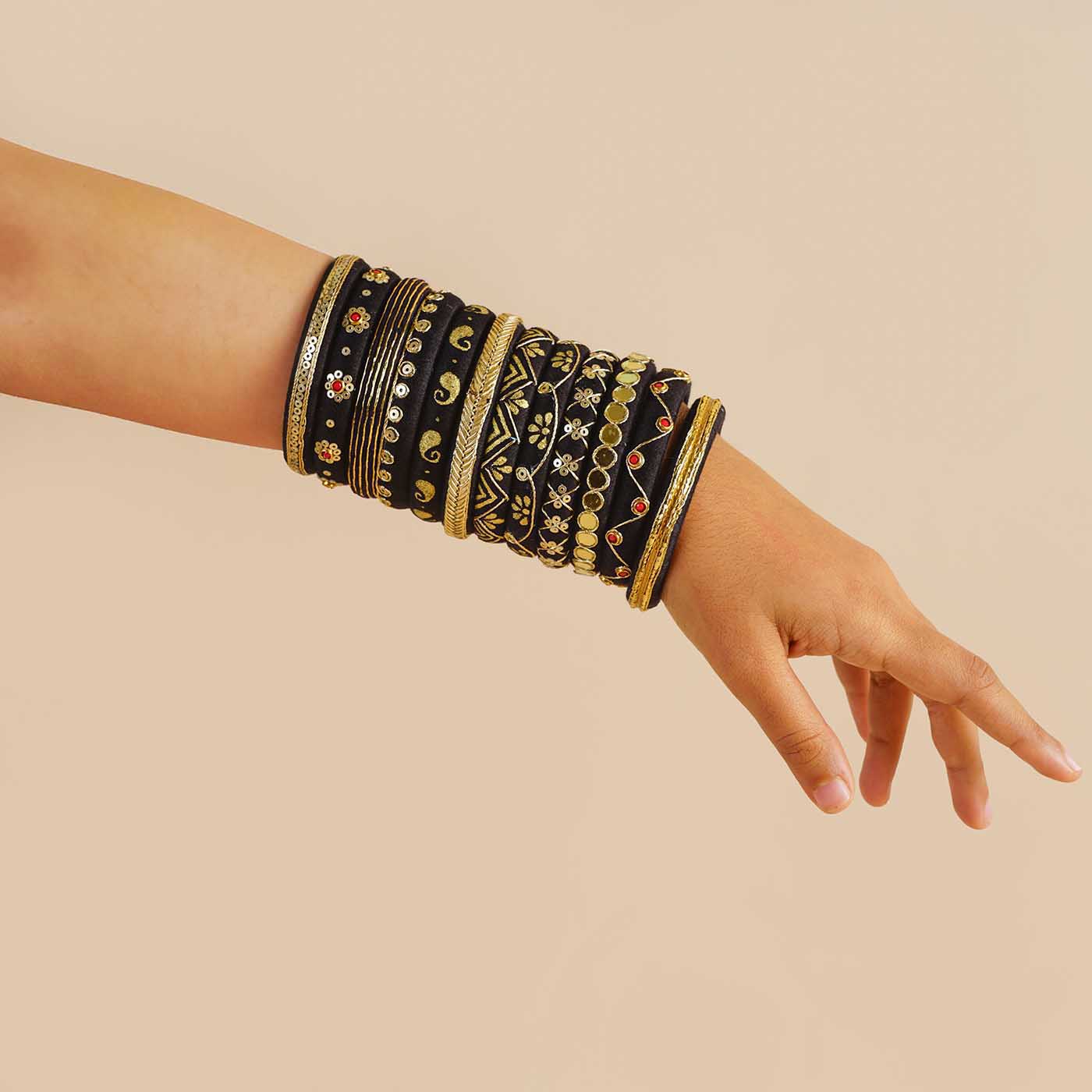 Black Handcrafted Chhaya Bangles | Set of 12
