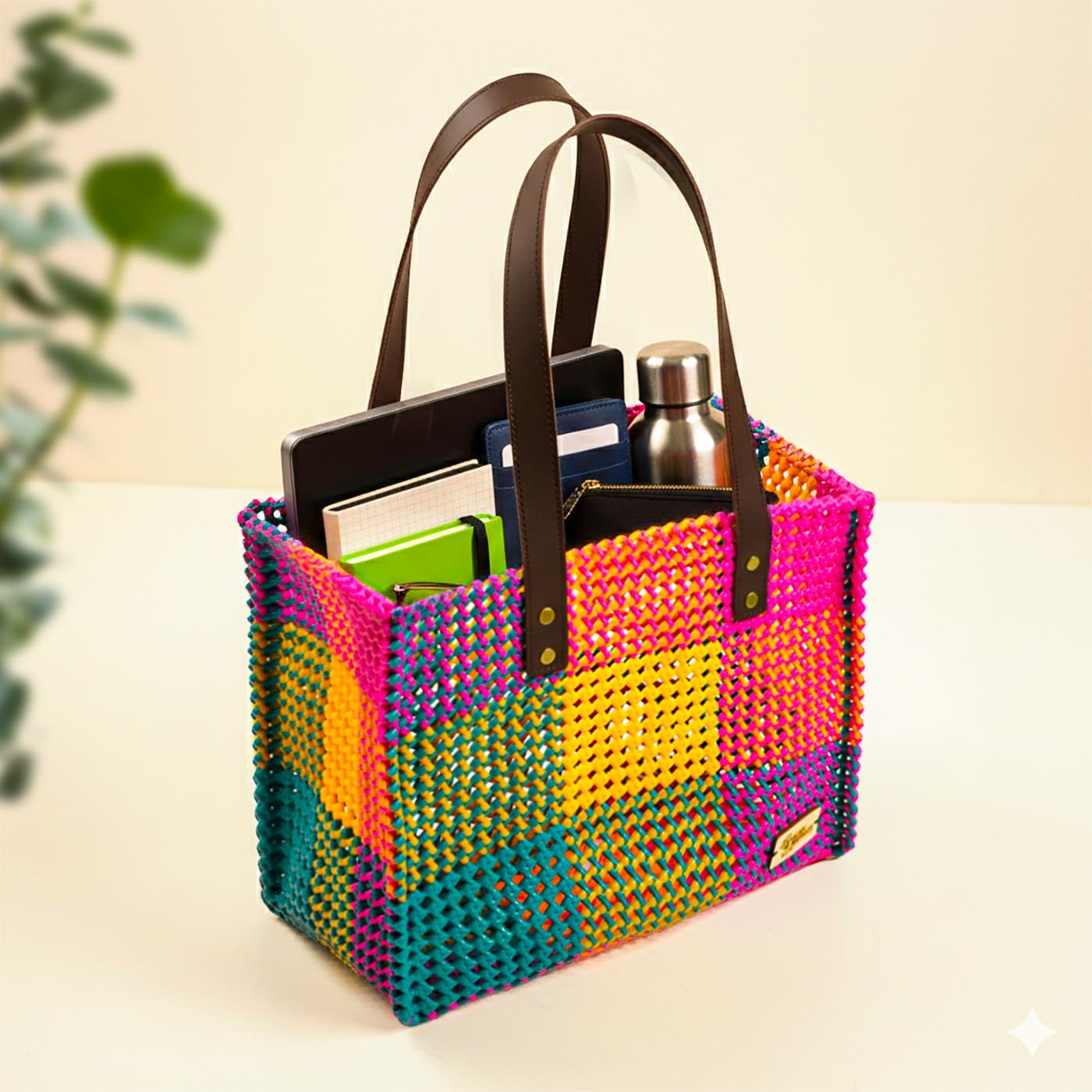 Checkered Multicolor Mukhya Knot Handmade Koodai Tote Bag