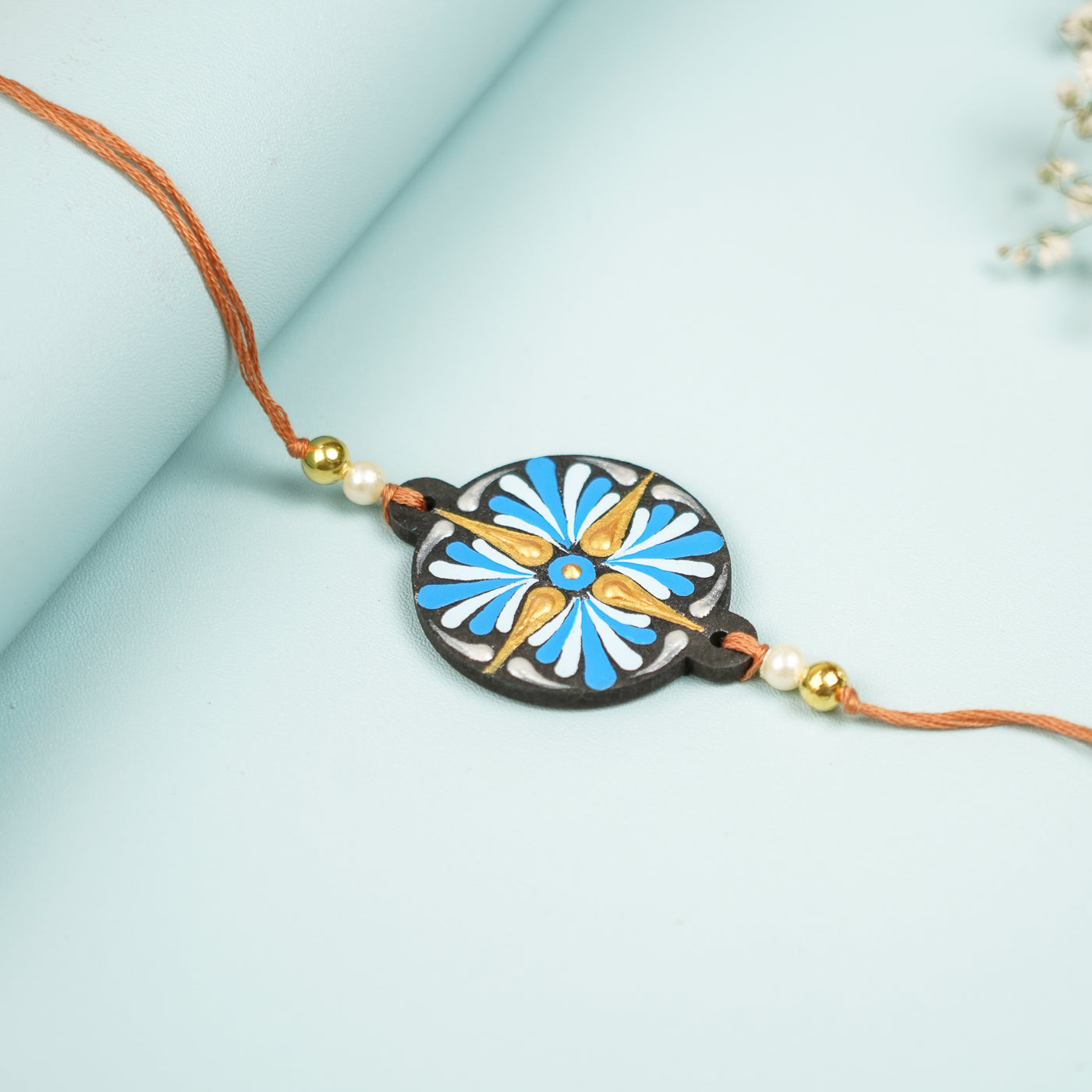 Bring in ethnic elegance with this handcrafted round rakhi for Raksha Bandhan.