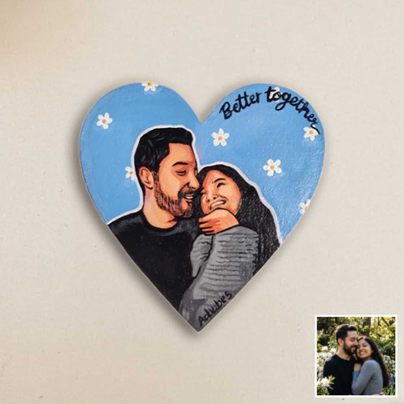 Cute Couple Photo Personalized Handpainted Heart Shape Canvas Portrait