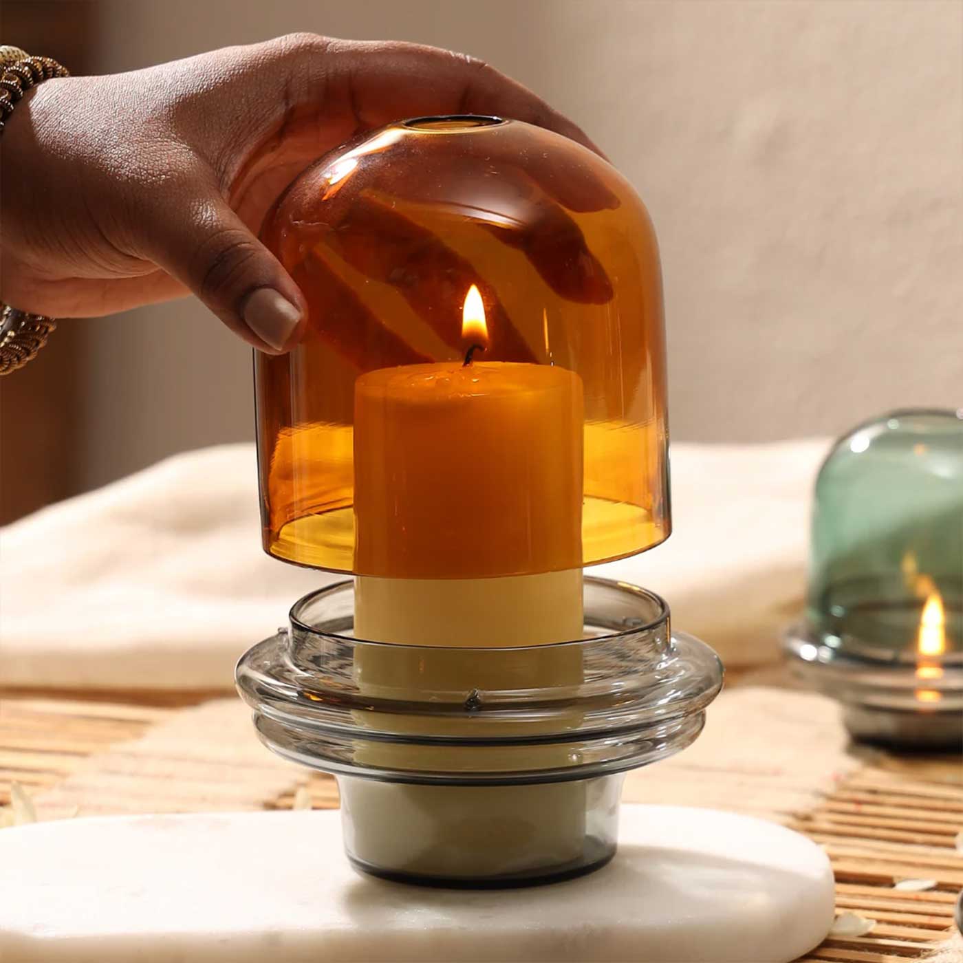 - This dome-shaped candle holder combines modern design with functional elegance, crafted from premium borosilicate glass.