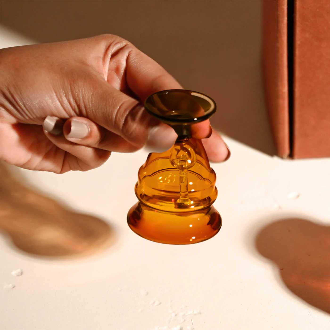 - This small bell is crafted from premium borosilicate glass, known for its strength and durability.