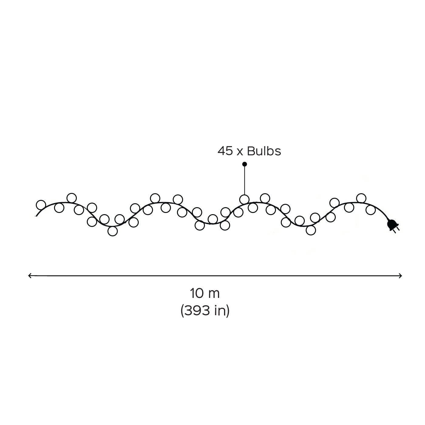 Dimensions: 10 meters (with 38 bulbs)