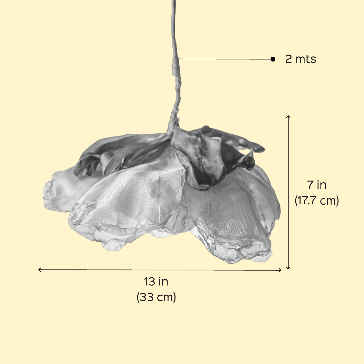 - This pendant lamp features a handcrafted organza flower in soft cream, casting a gentle, serene glow.