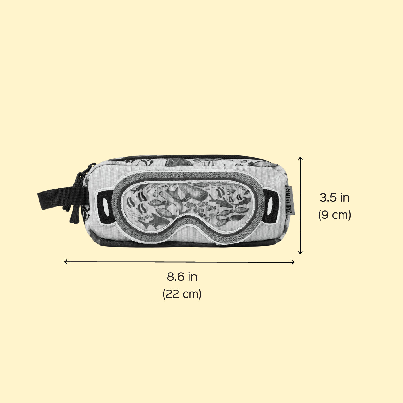 - Inspired by ocean hues, this pouch brings a splash of adventure to every school day.