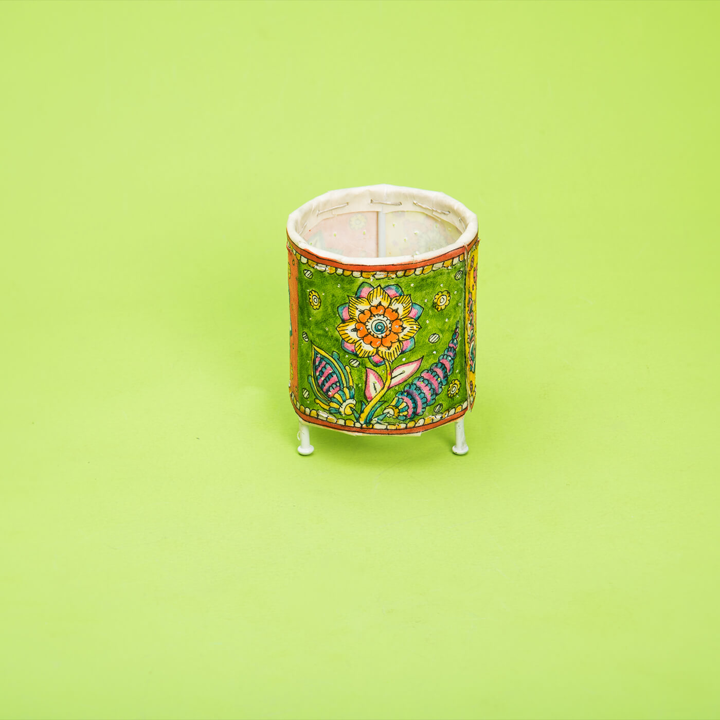 Hand Painted Parchment Leather Floral Tholu Bommalata Tealight Lamp |