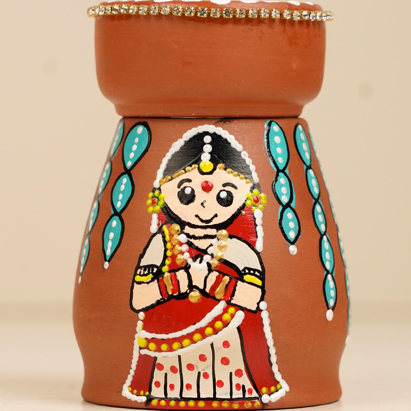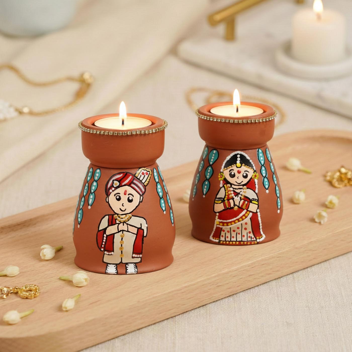 Gujrati Couple Handpainted Terracotta Tealight Holder