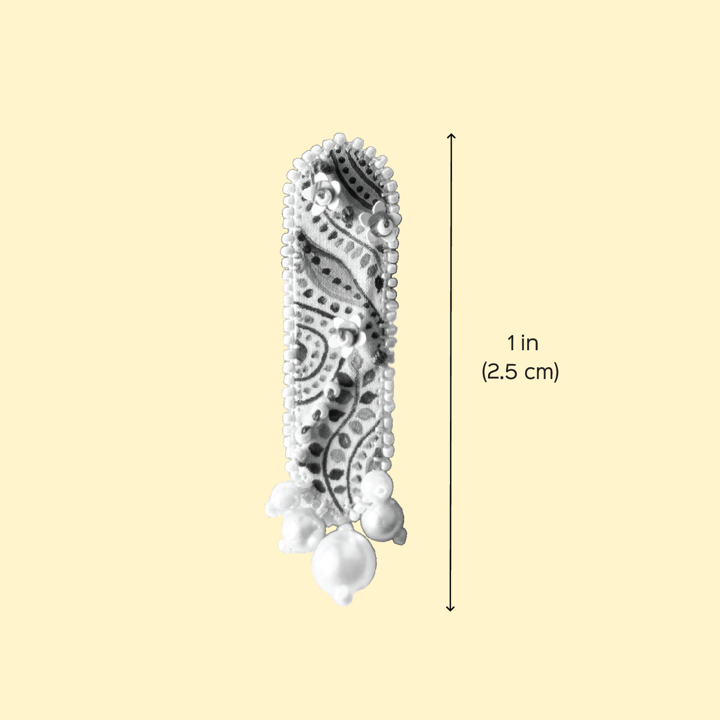 - Tiny sequins, micro-beads, and pearls are meticulously stitched onto soft cotton, creating a refined, layered texture.