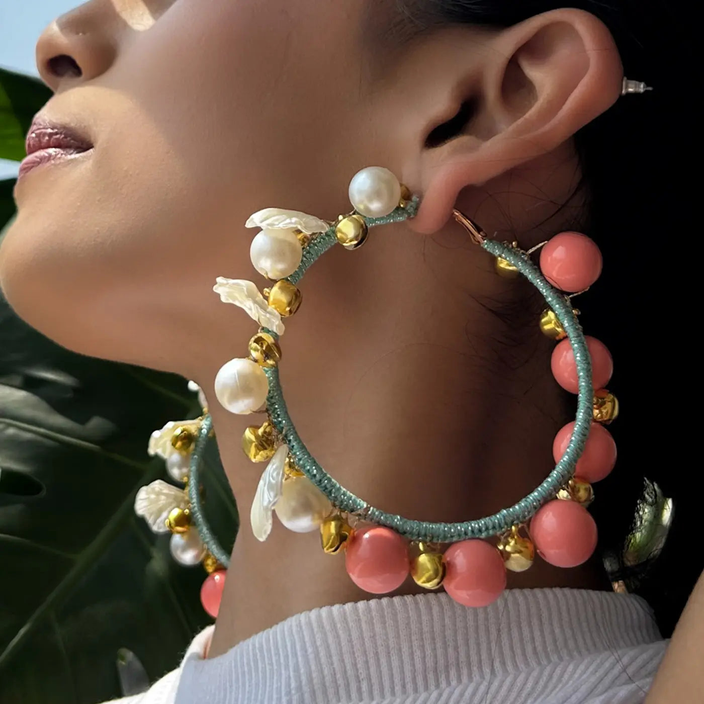 - The Peachy Hoop Earrings combine cultural richness with bohemian charm in every stitch.
