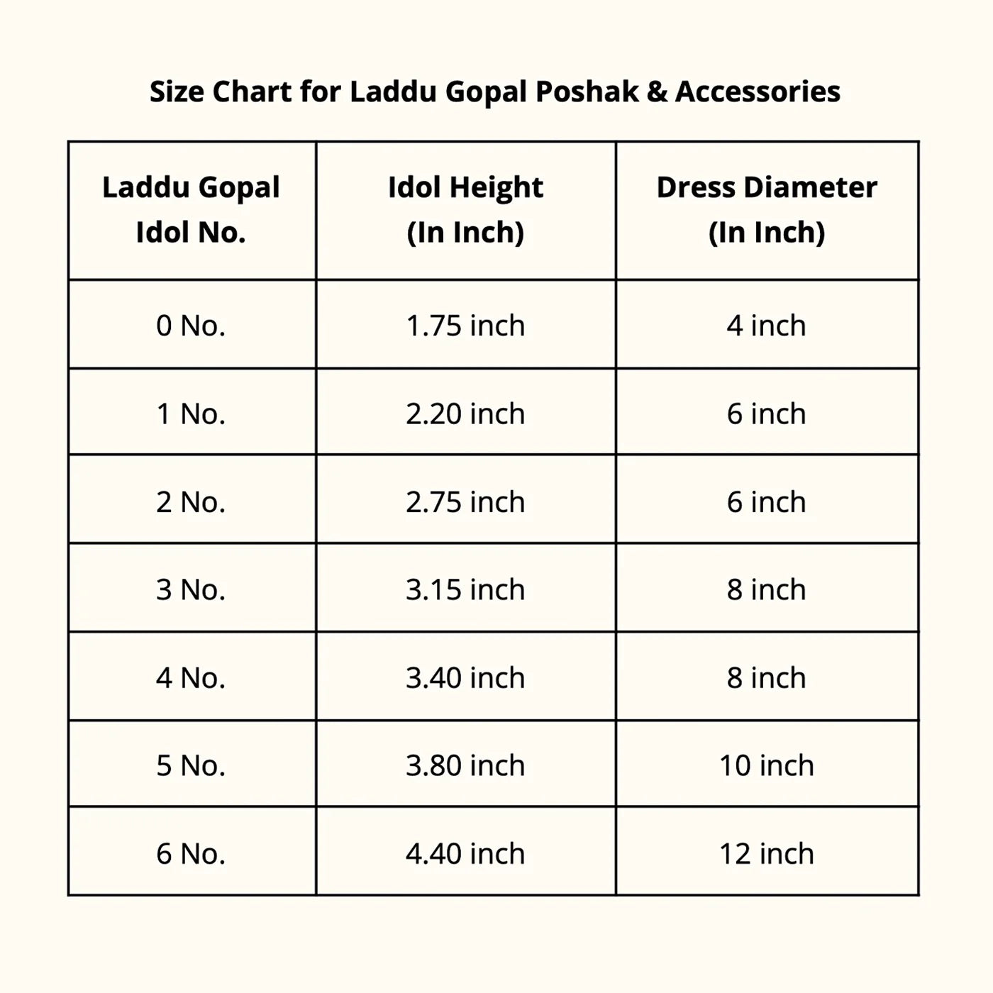 - Perfect for festive darshan, it includes a dhoti-style outfit in multiple sizes for divine elegance.