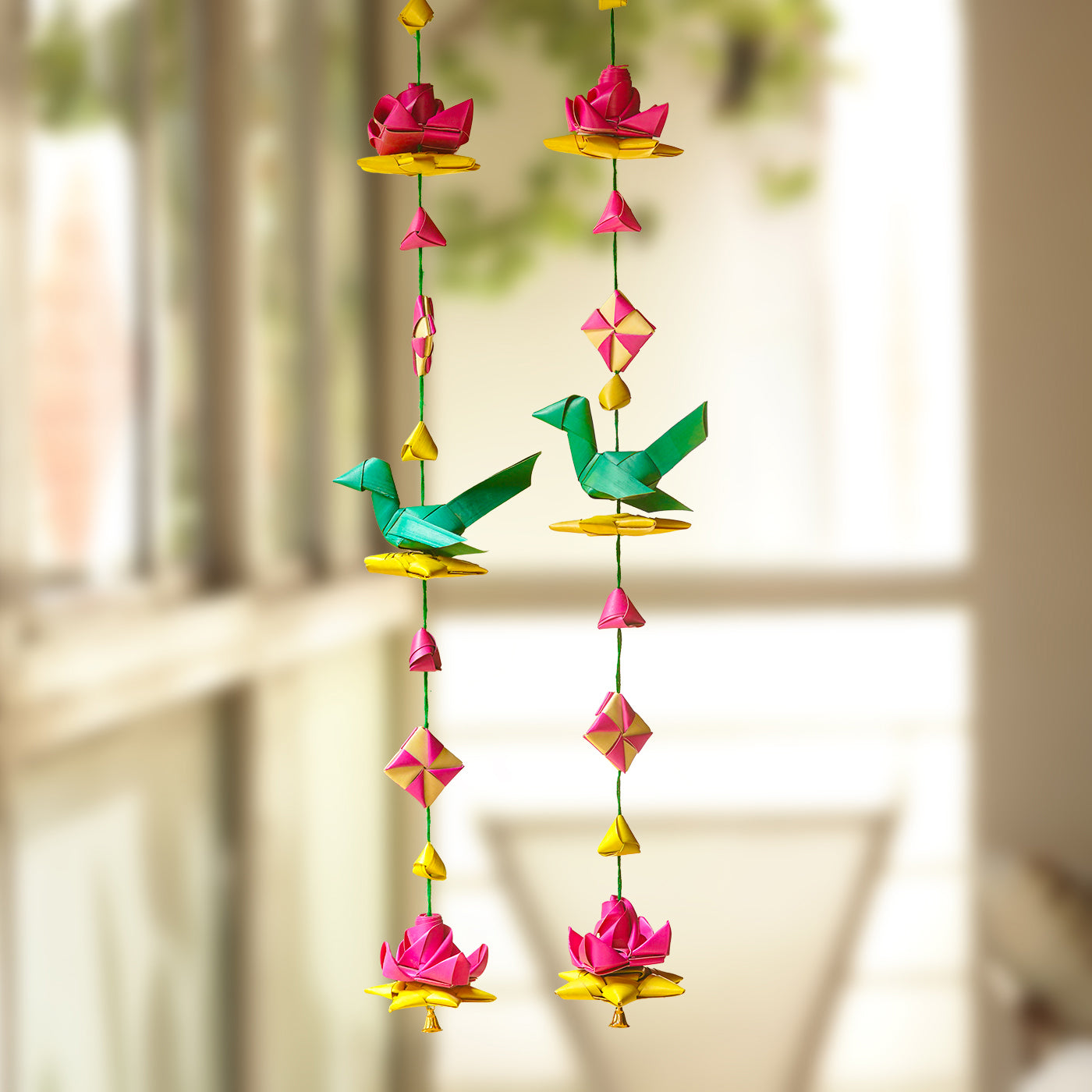 - Enhance your Diwali decor with this beautiful set of 2 handmade palm leaf parrot hangings, crafted by talented rural women artisans.