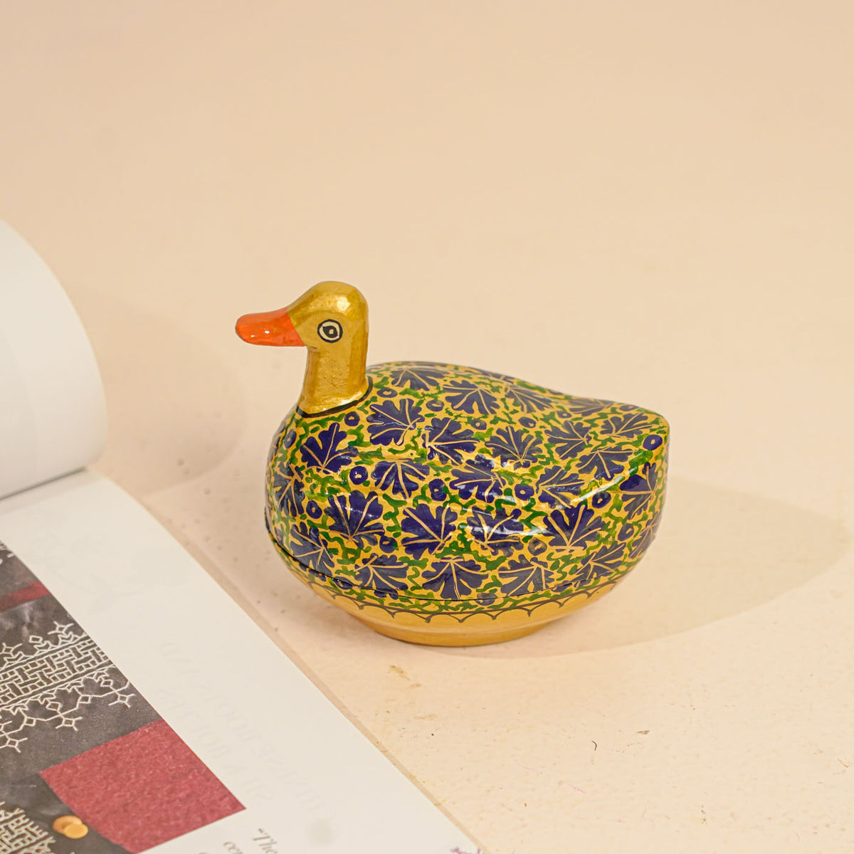 Hand-Painted Blue & Gold Kashmiri Paper Mache Duck Trinket Box