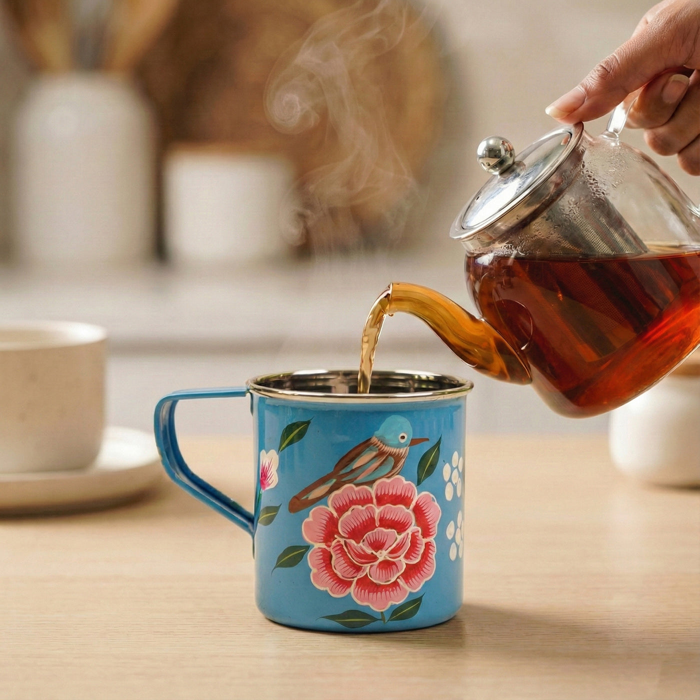 • A beautifully hand-painted mug that adds a touch of Kashmiri artistry to daily routines.