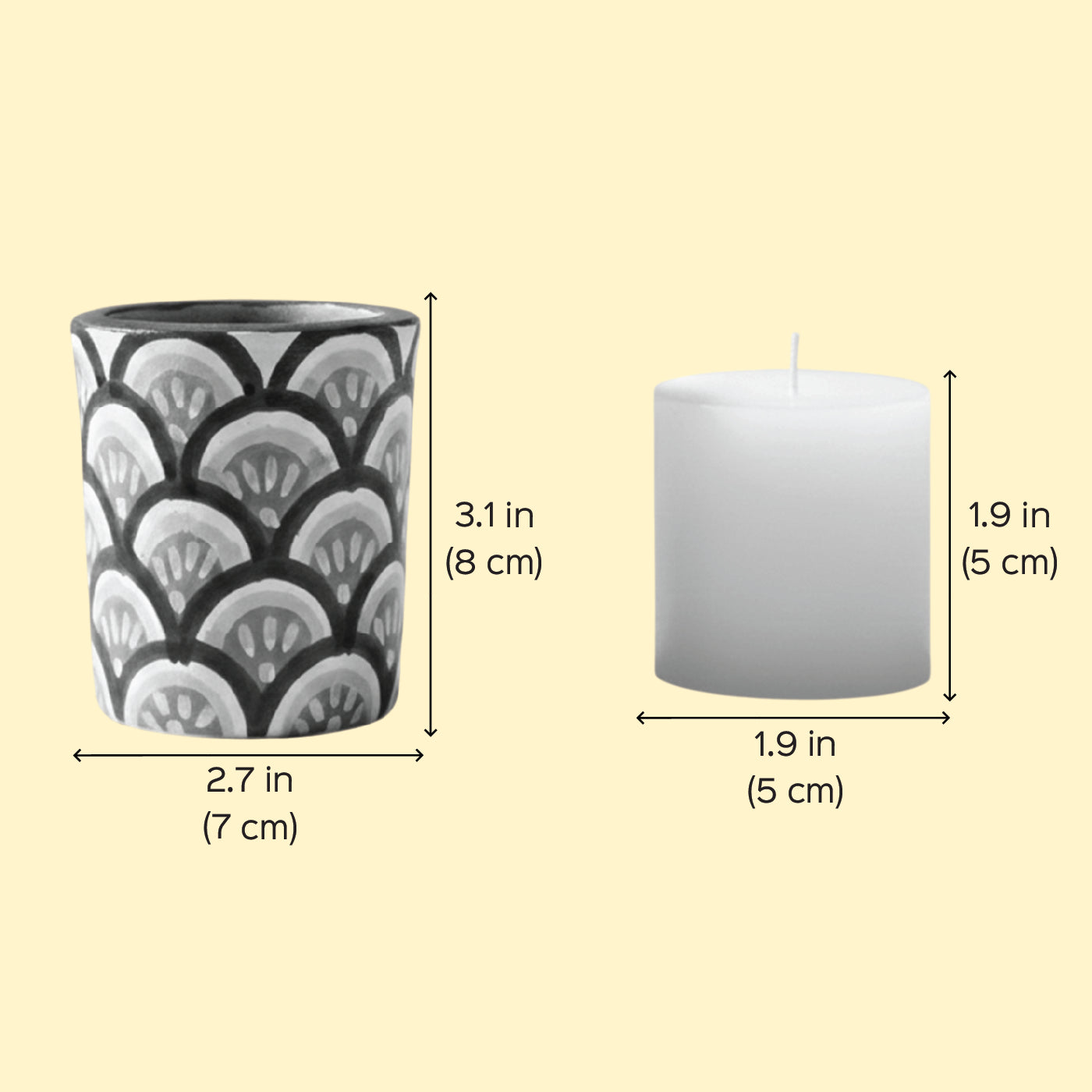 - This hand-painted terracotta candle holder features classic blue indigo motifs inspired by traditional pottery art.