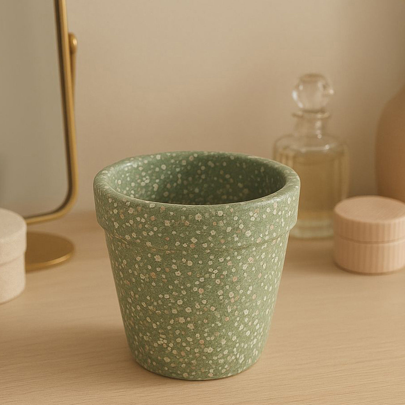 • This candle holder is shaped like a miniature planter, offering a fresh, vibrant aesthetic.