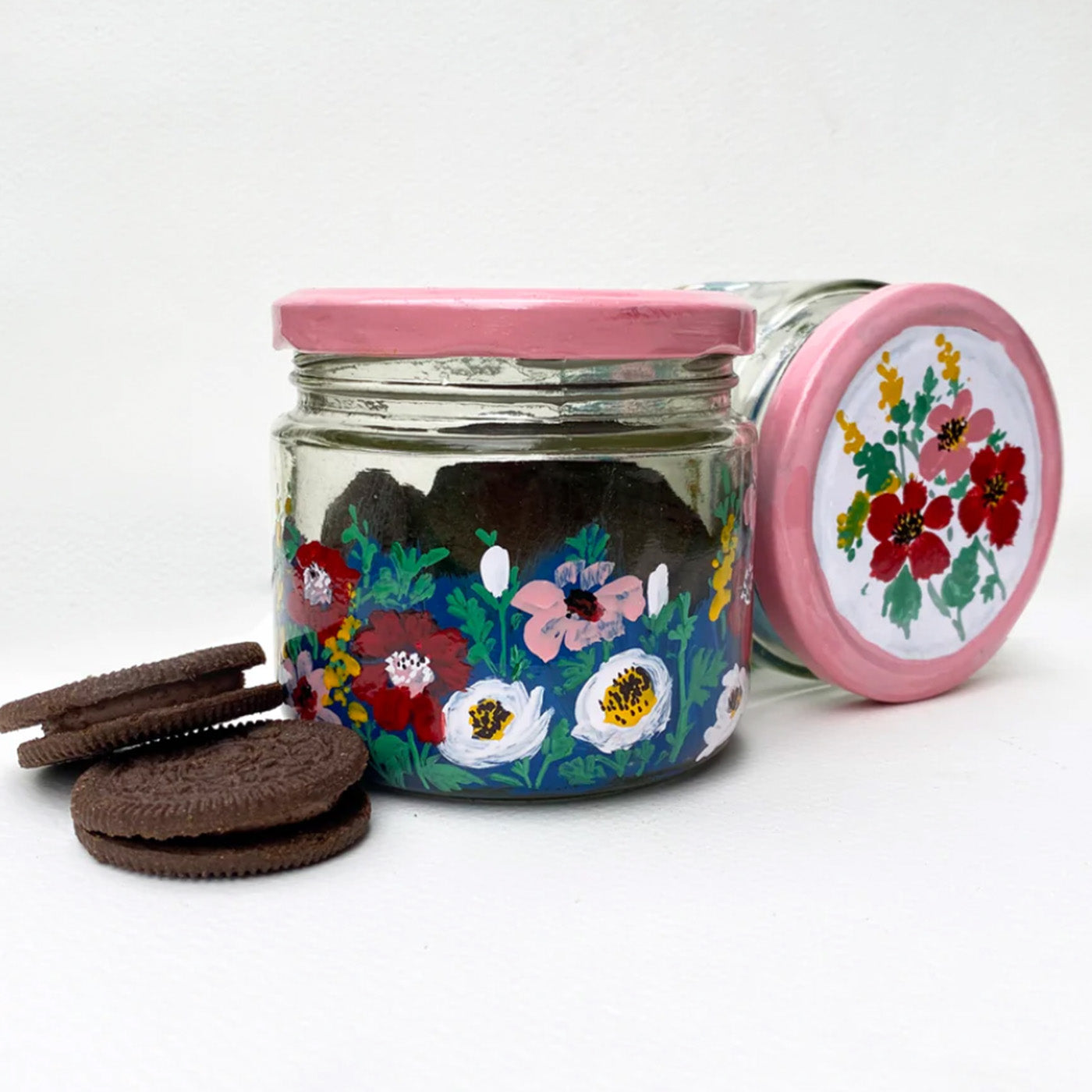 • Celebrate the colors of spring with these hand-painted floral jars.