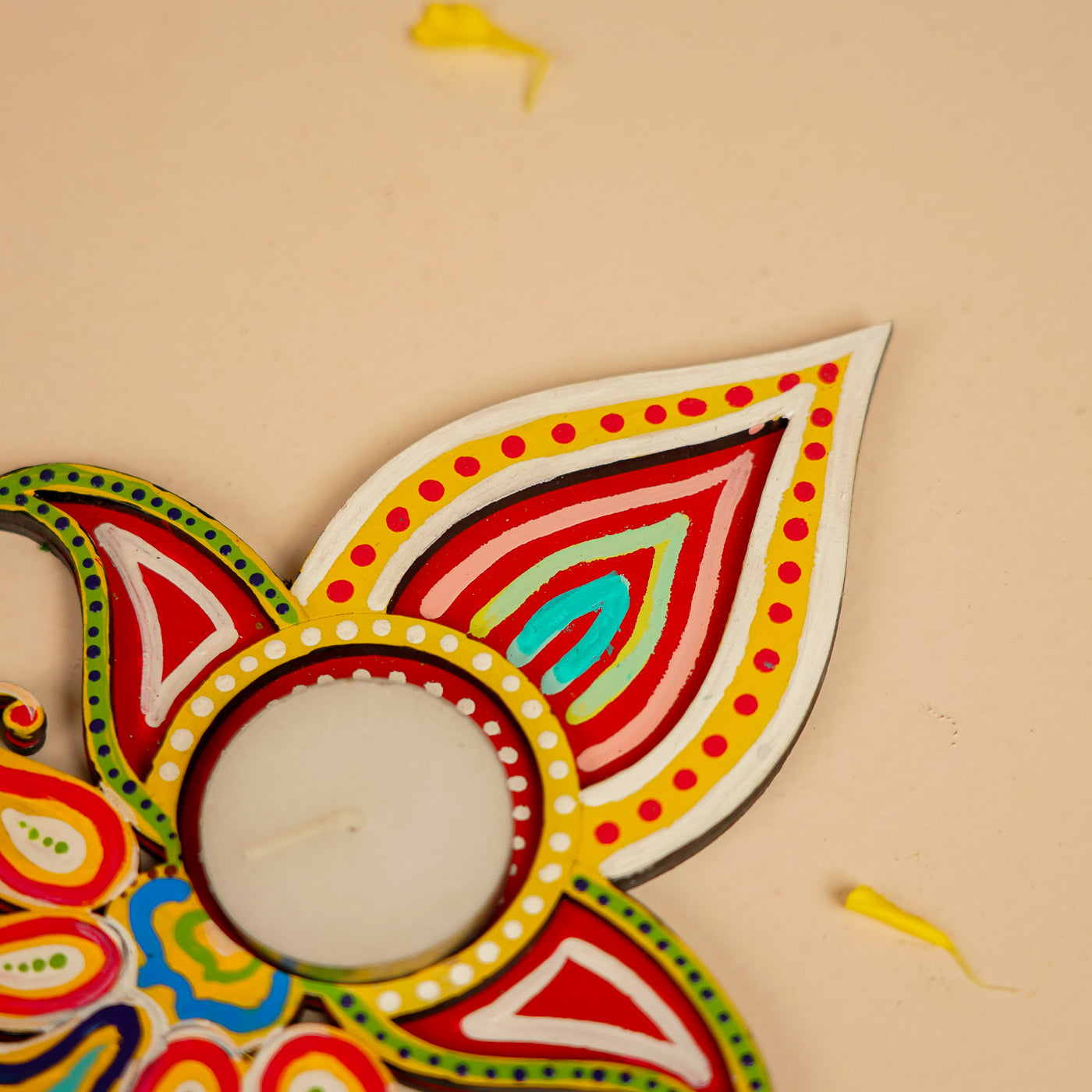 Hand-Painted Pallavam MDF Wood Tealight Holder | Set Of 2